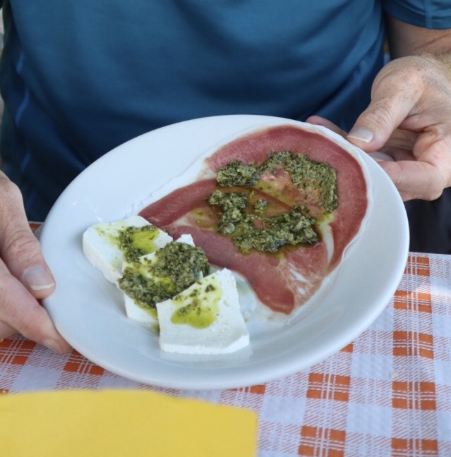 Es wird aber auch auf dieser Etappe nicht der letzte Genuss sein. Da sich der Himmel verzieht und erste Regentropfen fallen, lassen wir den letzten Gipfel aus und steigen auf die Normalroute zurück. Gemäss GTA Führer Bätzing, sollte das Rifugio in Maletto geschlossen sein. In der Zwischenzeit wurde es renoviert und wieder eröffnet. Es braucht wenig Überredungskünste von Sonja und schon haben wir uns einen Terrassenplatz geschnappt. Hmm, heute ist Sonntag, komm lass uns mit einem Sonntagsmenü verwöhnen. Auf 5-Stern Niveau werden wir mit 5 Gängen bedient.