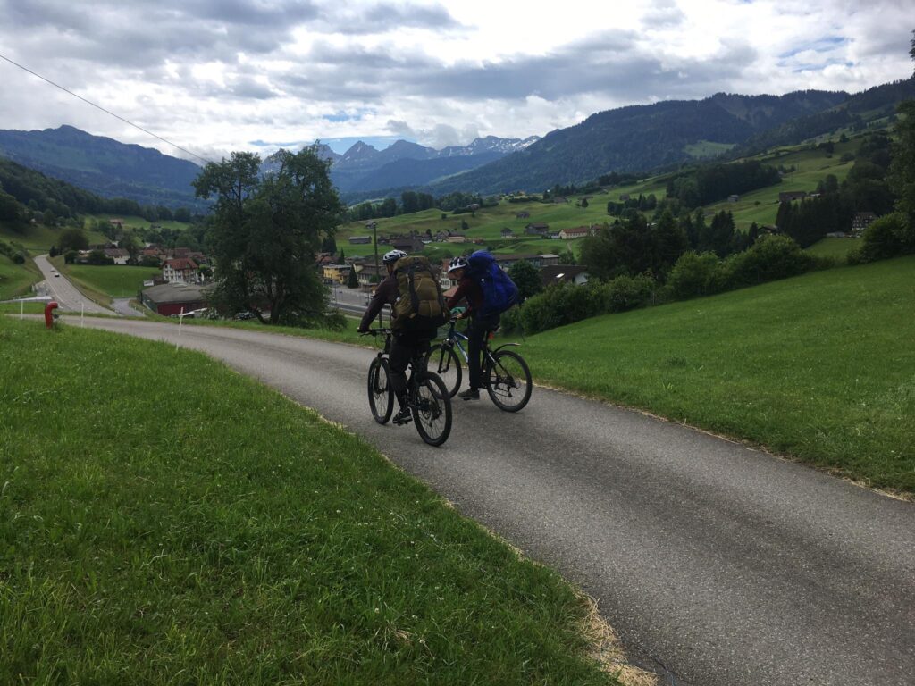 Unsere zweite Nomadenwoche ist schon voll im Gange, wir sind nun in der Region mit den meisten Besuchen in kleinem Umkreis. Um eine gewisse Flexibilität zu haben, behalten wir unsere Fahrräder noch ein paar Tage und können so die Wegzeiten verkürzen und auch kreuz und quer reisen. Zu Fuss werden wir die Routenplanung dann direkter wählen und Zusatzschlaufen vermeiden. Aber das Timing geht bis jetzt gut auf, die regnerischen Tage sind auf diese Weise gut erträglich, denn auch die nächsten Nächte haben wir bereits ein reserviertes Schlafplätzchen.