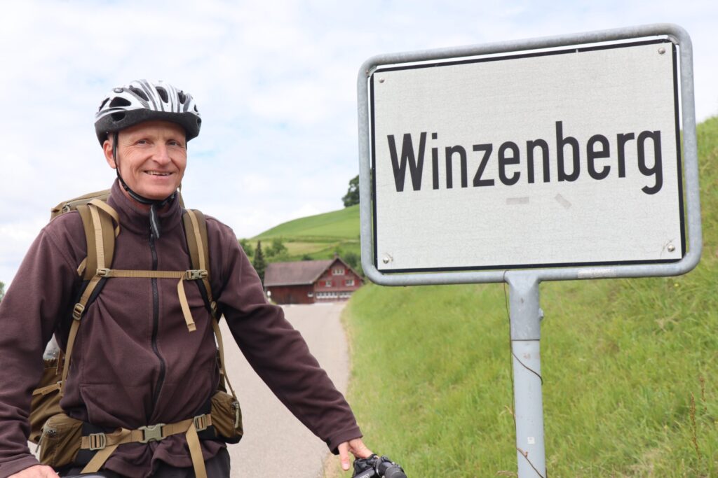 Am Montag ist das Wetter recht freundlich, der Tag ist unverplant, einziger Fixpunkt ist ab 18 Uhr in Sirnach. Deshalb bauen wir auch bei Thomas noch ein paar zusätzliche Heimatgefühle ein und nehmen den Umweg über den Winzenberg, nicht zu verwechseln mit dem Wurzelberg.