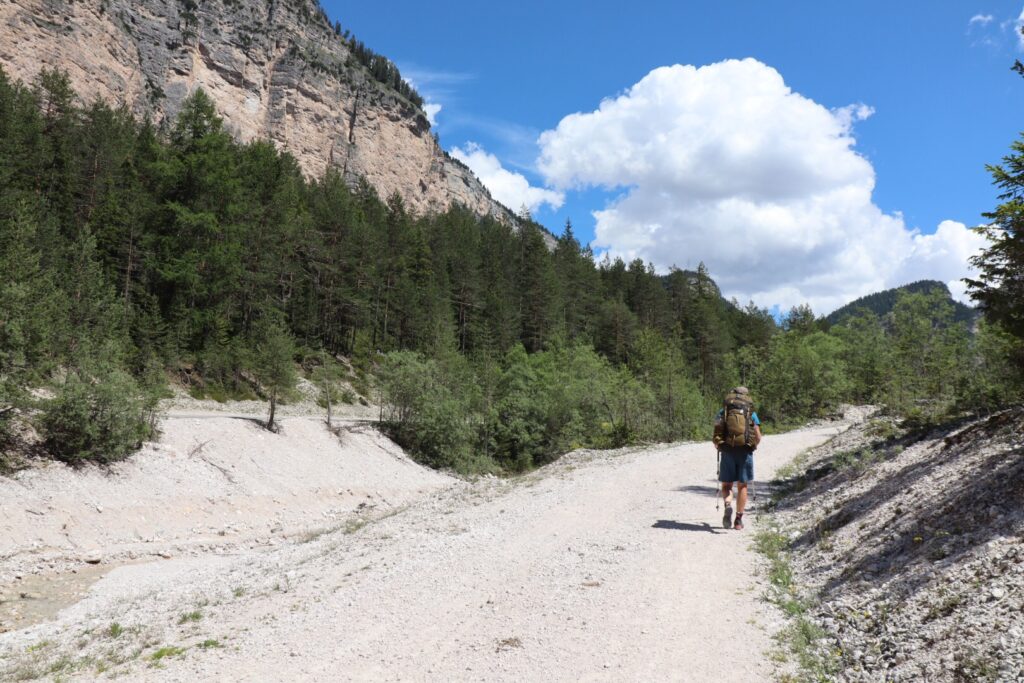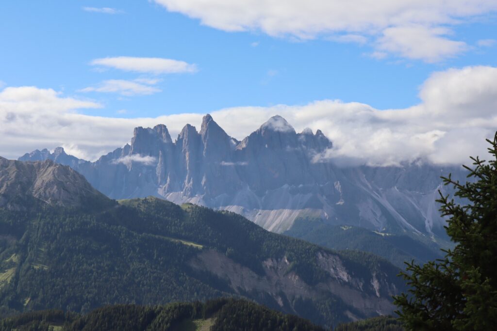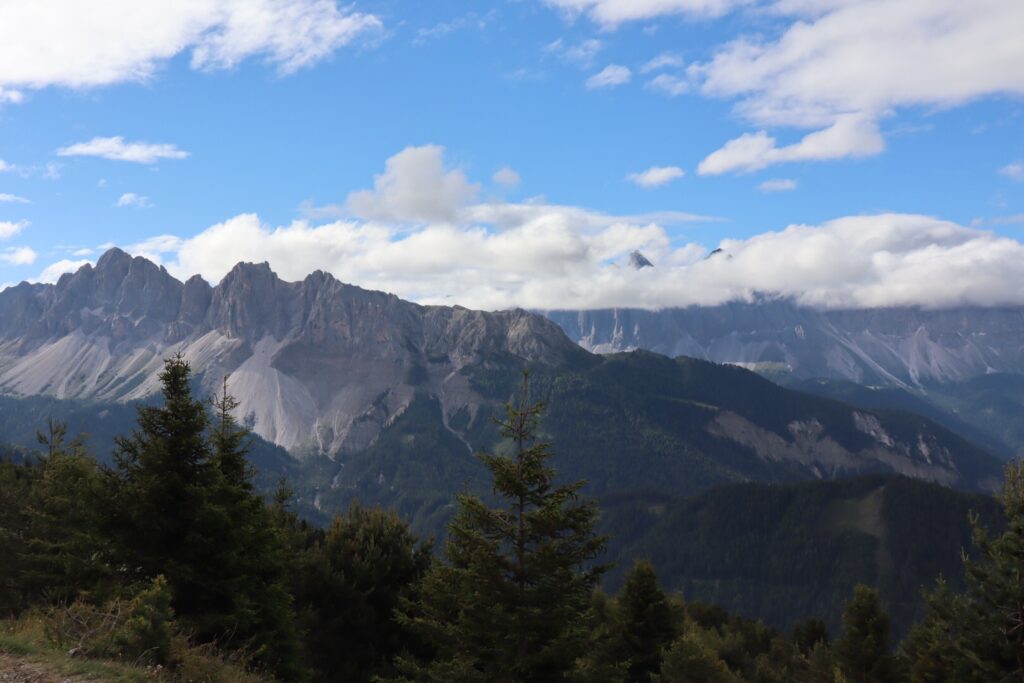 Wir kommen heute richtig zügig vorwärts, die Wege sind leicht zu gehen und unsere Beine sind nun wirklich gut eingelaufen. Das eindrückliche Panorama des Puez-Geisler-Natur-Parks hält sich konstant auf unserer Rechten.