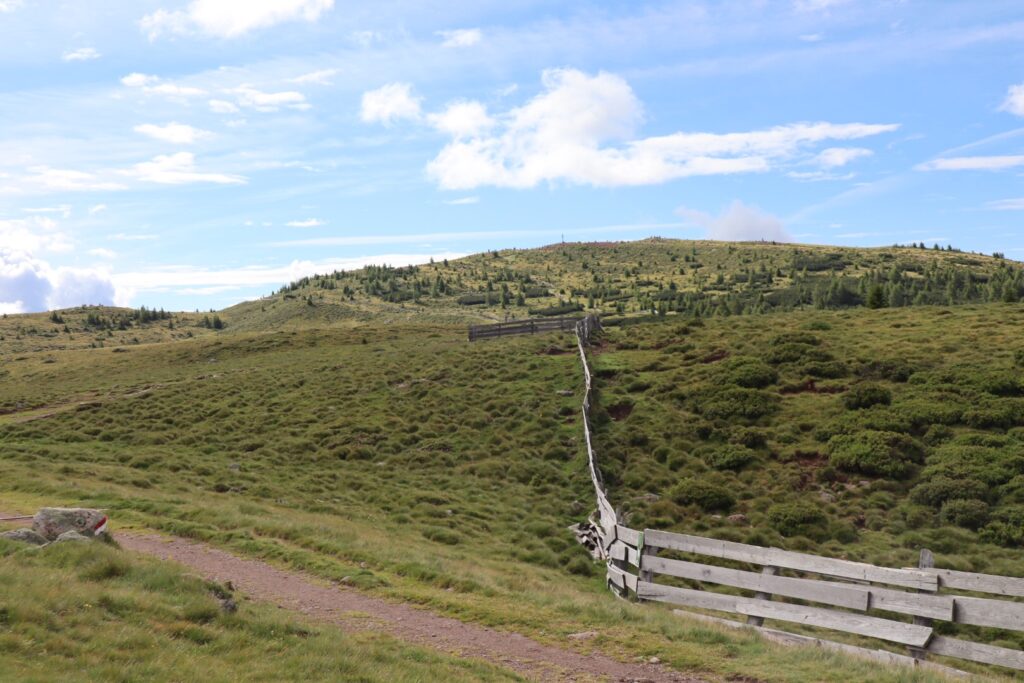 Gegen Mittag erreichen wir das Latzfonser-Kreuz, gerne verlassen wir die Menschenansammlung wieder und bereits nach der ersten Wegbiegung befinden wir uns wieder in der Bilderbuch-Einsamkeit der Bergwelt.
