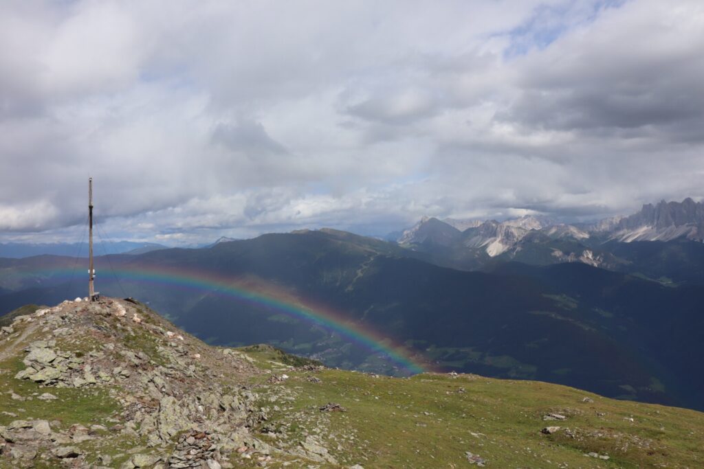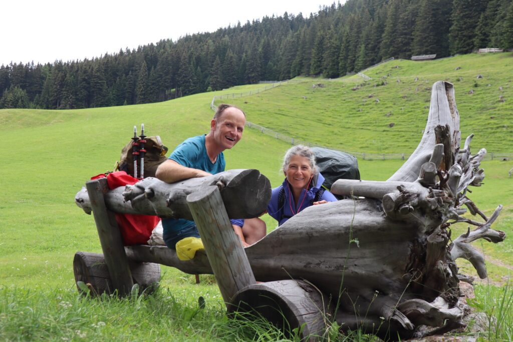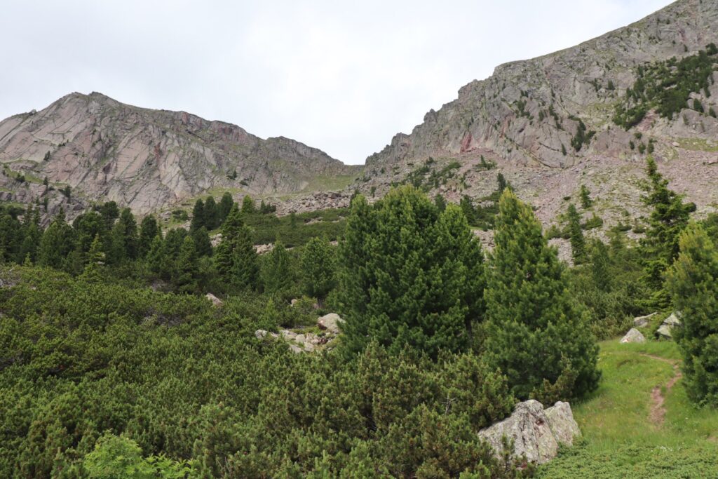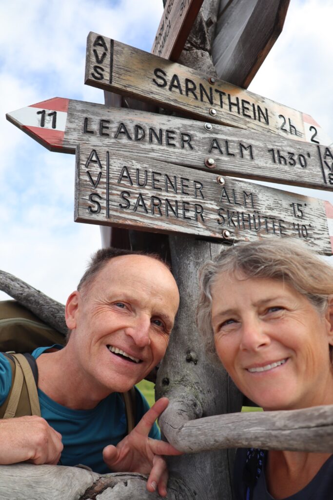 In Sarnthein erledigen wir unsere Einkäufe und steigen dann gleich wieder auf den Bergweg, welcher uns in fast 1500 HM auf die Sarner Scharte führt. Leichte Regenschauer wechseln sich ab mit sonnigen Abschnitten, entsprechend schwitzig ist der Aufstieg.