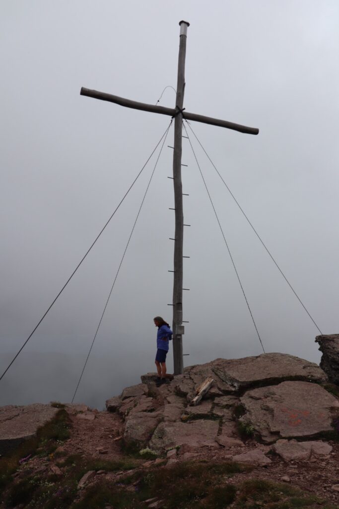 Wir erreichen den Gipfel etwa zeitgleich mit dem Nebel, der spielt uns einen schönen Streich.