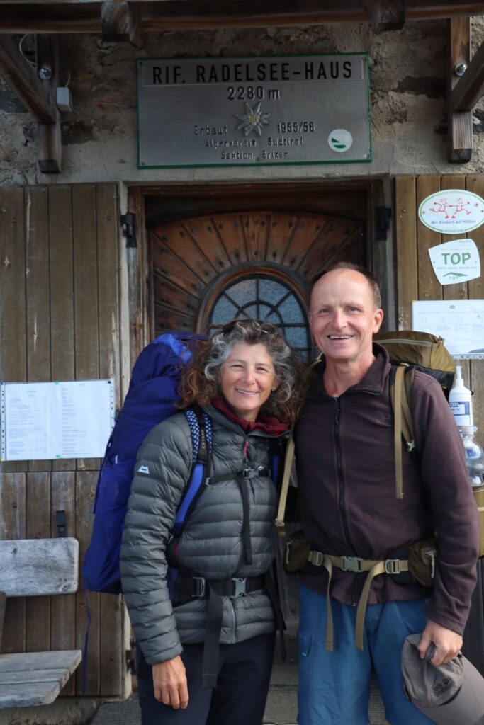 Glücklich erreichen wir nach einer halben Stunde das Rifugio Radlsee. Wir können nicht widerstehen: tolle Aussicht auf die Dolomiten, Doppelzimmer, einzige Übernachtungsgäste, Duschmöglichkeit, sympathische Wirtsleute: somit ist klar, das Doppelzimmer mit Aussicht ist gebucht!