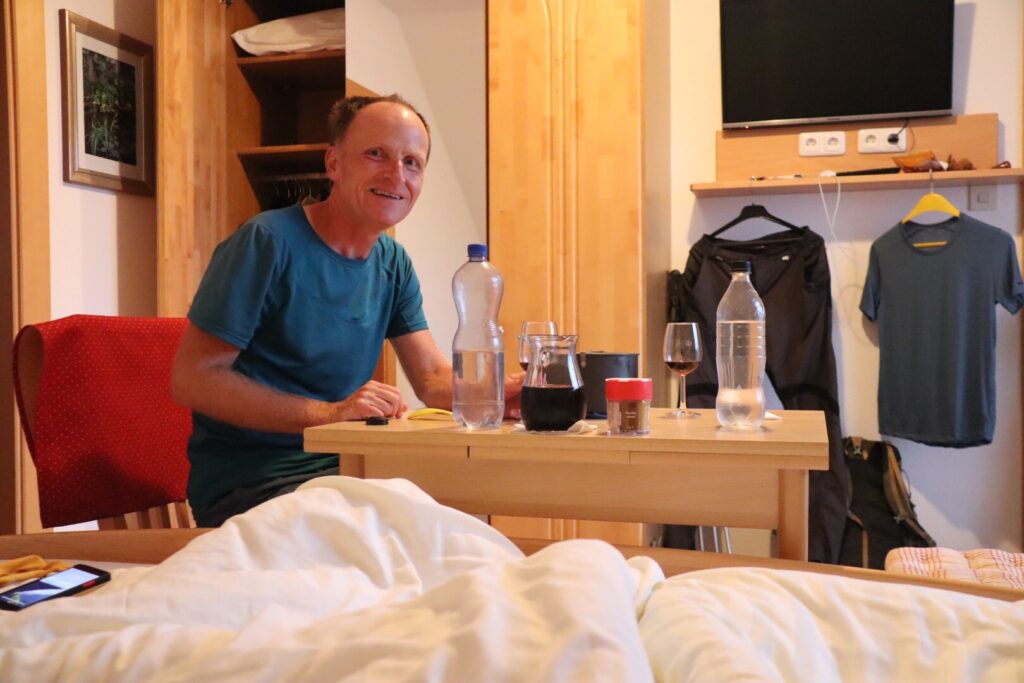 Nach zwei echten Pausentagen in Agoritschach packen wir unsere sieben Sachen in den Rucksack und ziehen am Dienstag wieder los, ab heute weist uns eine neue Himmelsrichtung den Weg, wir schwenken um von Ost nach Süd.