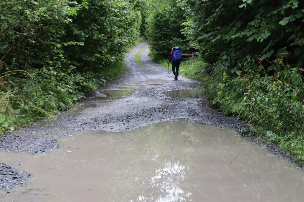 Das Wetter ist heute noch regnerisch und es braucht schon einen kleinen Ruck, um das angenehme Zimmer wieder zu verlassen. Aber sobald wir im Gehrhythmus sind, ist es so, als gäbe es nichts anderes.