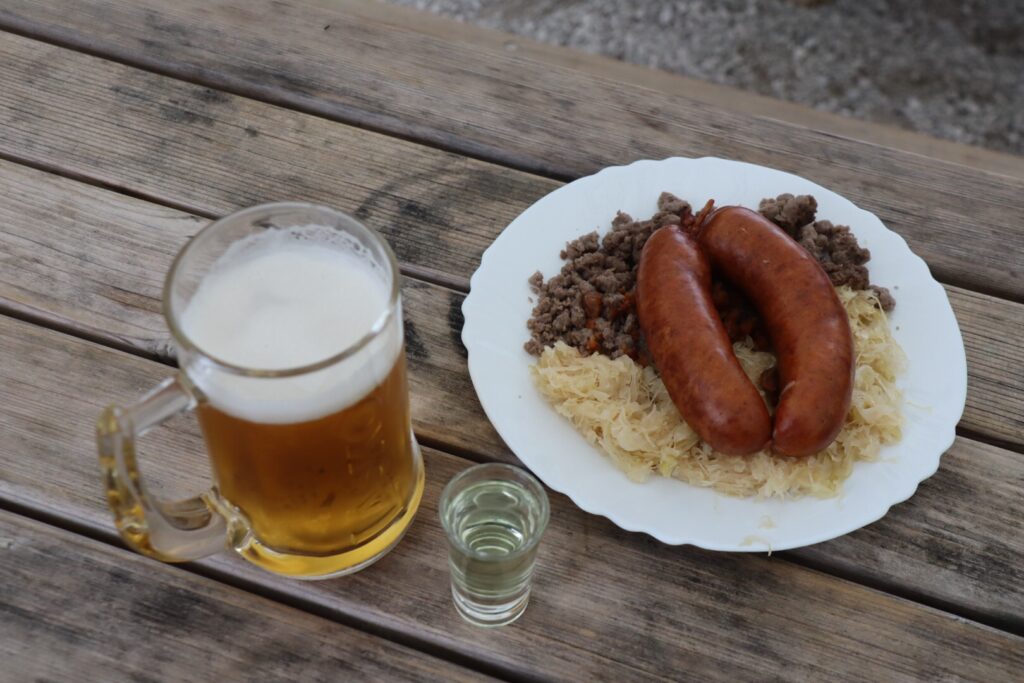 Bei deftiger Kost und einem Verdauungsschnaps versuchen wir unsere ersten Eindrücke von Slowenien setzen zu lassen: unkompliziert, freundlich, offen und dem Alkohol nicht abgeneigt.