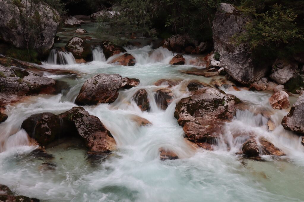 So nehmen wir auch den kurzen Abstecher zur Quelle der Soča auf uns, sie begleitet uns in ihren türkis Farben bis zu unserem Etappenort Trenta.