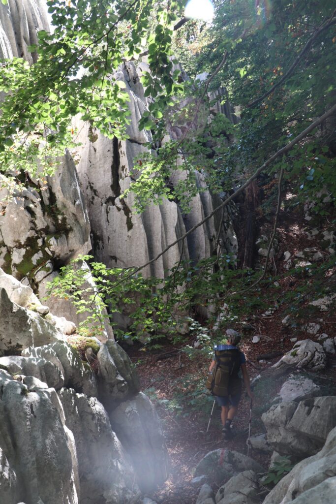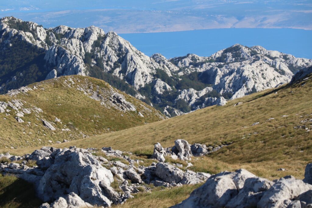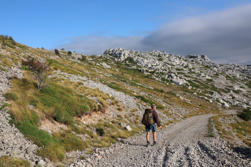 Beruhigt ziehen wir weiter und stehen schon bald im Paklenica-Nationalpark, der letzte im Velebit-Gebirgszug. Ein richtiger Bergweg führt uns auf den Passübergang und die nächste Hochebene.
