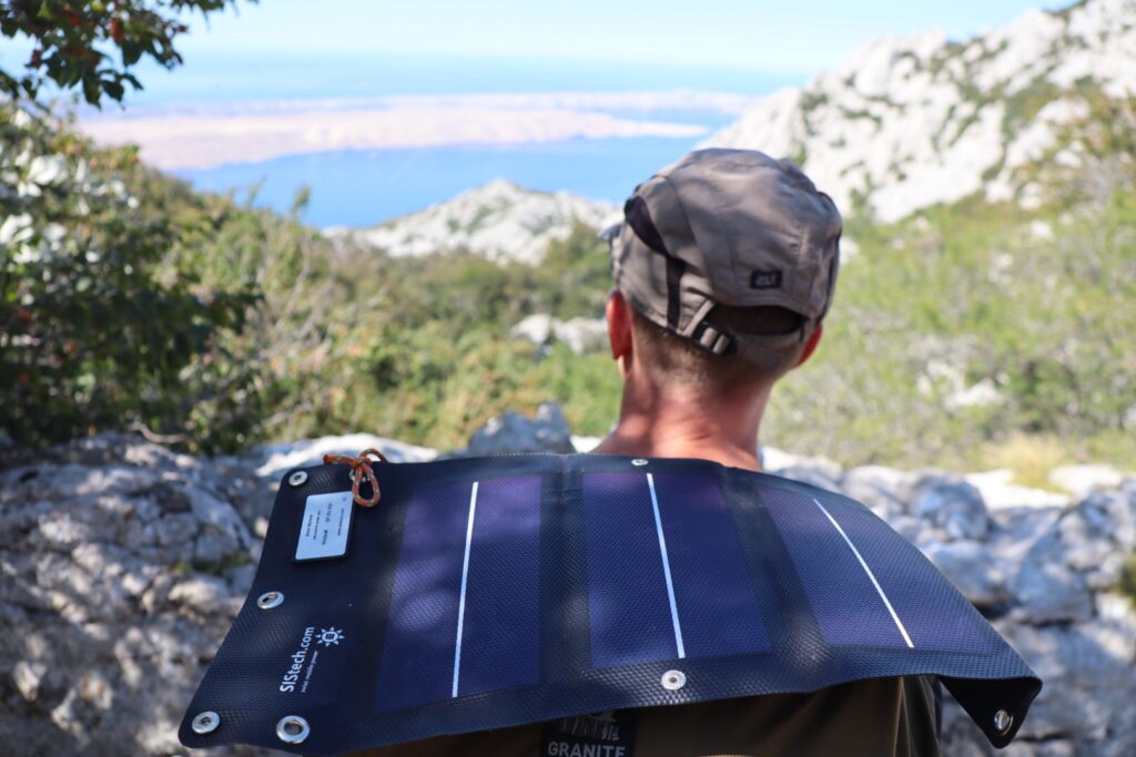 Um einigermassen autark zu sein in Bezug auf Strom, laden wir jeweils tagsüber unterwegs eine Powerbank mit dem Solarpanel. Dies funktioniert sehr gut, solange die Sonne ausreichend scheint. Zur Navigation sind wir auf ein funktionierendes Handy angewiesen, ohne dieses Hilfsmittel würden wir wohl immer noch in Kroatiens Norden in den Wäldern im Kreis drehen.