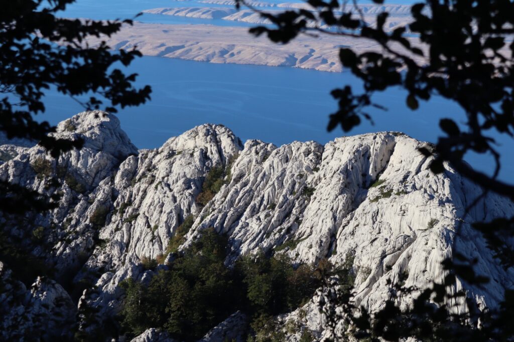 Bald stehen wir wieder inmitten dieses Naturmuseums mit unzähligen Gebilden aus Karst, welche über Jahrtausende durch Gletscher und Wasser entstanden sind. Und auch dann noch stolz hier stehen werden, wenn sich der Mensch wegrationalisiert hat. Besonders reizvoll ist es, plötzlich wie durch ein Fenster wieder aufs Meer schauen zu können.