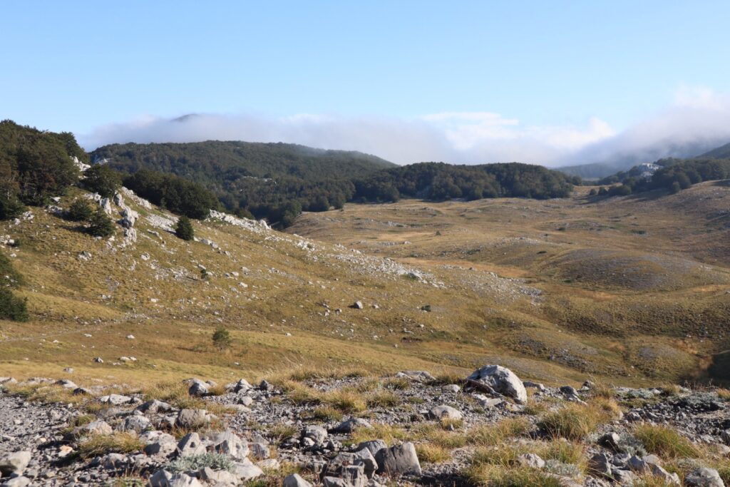 Doch die Sonne steigt höher und wir schreiten Schritt für Schritt aus dem Velebit-Gebirge, über Forststrassen, durch Wälder und Weideland bis wir um halb vier zurück in der Zivilisation sind.