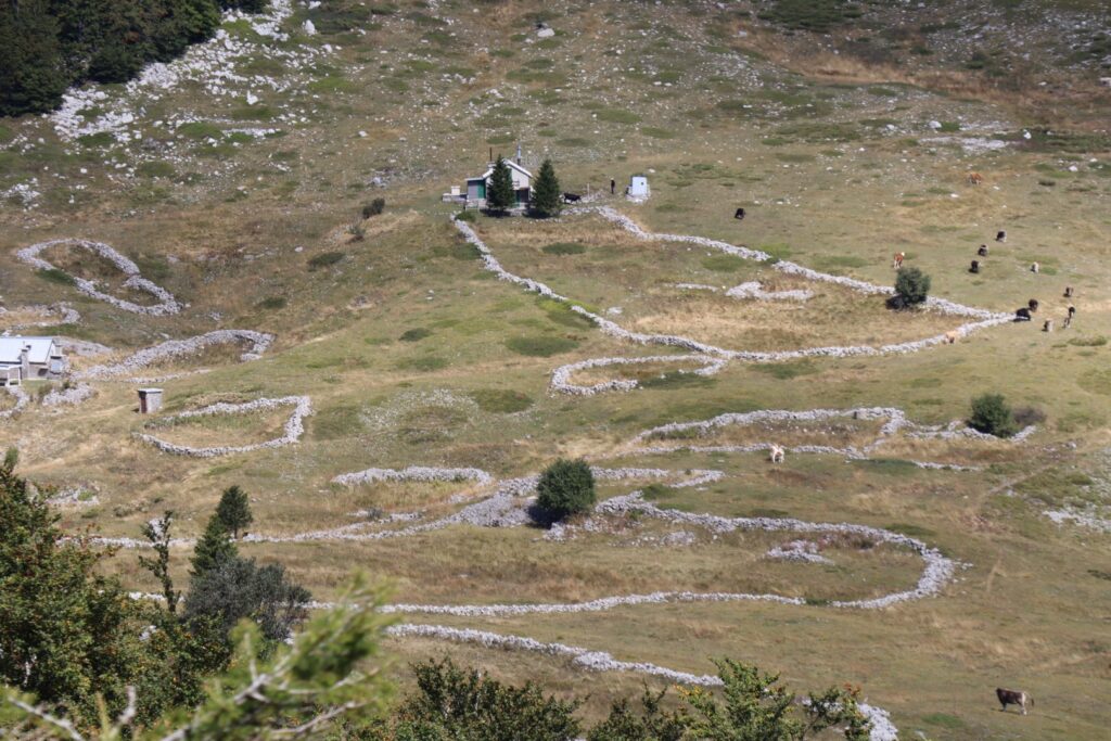 Kurz vor Oltari trauen wir unseren Augen nicht: da kommt uns tatsächlich ein echter Hiker entgegen! Dies erkennen wir schon von Weitem an der Rucksack-Grösse. Und es ist nicht irgendein Hiker, sondern Felix aus Winterthur. Er hat die Via Dinarica in Albanien gestartet und geht somit northbound. Natürlich gäbe es einiges zu besprechen, aber Felix hat noch viel vor heute und wir entscheiden, nicht in Oltari zu bleiben sondern noch auf die Zavizan-Hütte aufzusteigen.