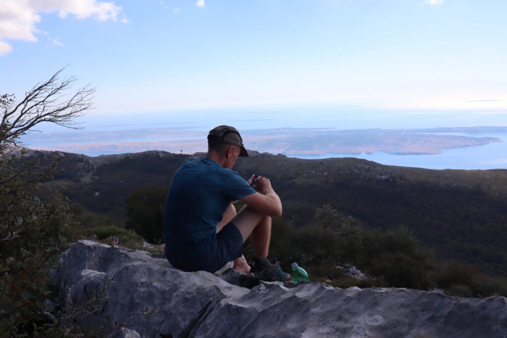 Wir habe heute zwei Varianten zur Auswahl, um nach Baške Ostarije zu gelangen. Entweder unten durch auf dem Premuzičeva Staza weiter oder oben rüber mit etwas mehr Bergluft. Zweimal dürft ihr raten, für welchen Weg sich unser Tourenplaner entschieden hat. So trottet die Blogschreiberin hinterher und als sie realisiert, dass heute auch einfacher Abend geworden wäre (und vorallem früher), sind wir schon beim zweiten Gipfelanstieg.