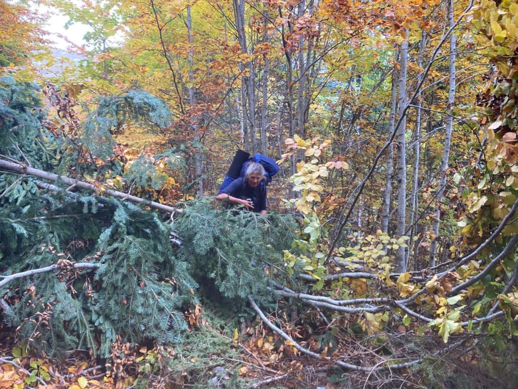 Doch dann ist plötzlich keine Wegspur mehr vorhanden und wir folgen vertrauensvoll unserem GPS-Track entlang Bächen, durch Wälder und über Stock und Stein. Wir wissen jetzt auch, weshalb dies die ‚Grüne Grenze‘ genannt wird. Braune Grenze wäre auch ok, denn vom Arsch bis zur Sohle ist nun alles braun!