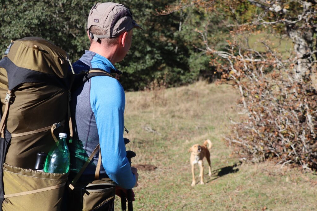 Tierische Erlebnisse gehören zu unserem Wanderalltag, in Montenegro laufen uns die Hunde nicht mehr nach sondern vertreiben uns mit lautem Gebell, auf diesem Hof kommen sie gleich zu fünft und umzingeln uns. Die Pferdebildergeschichte folgt gleich…