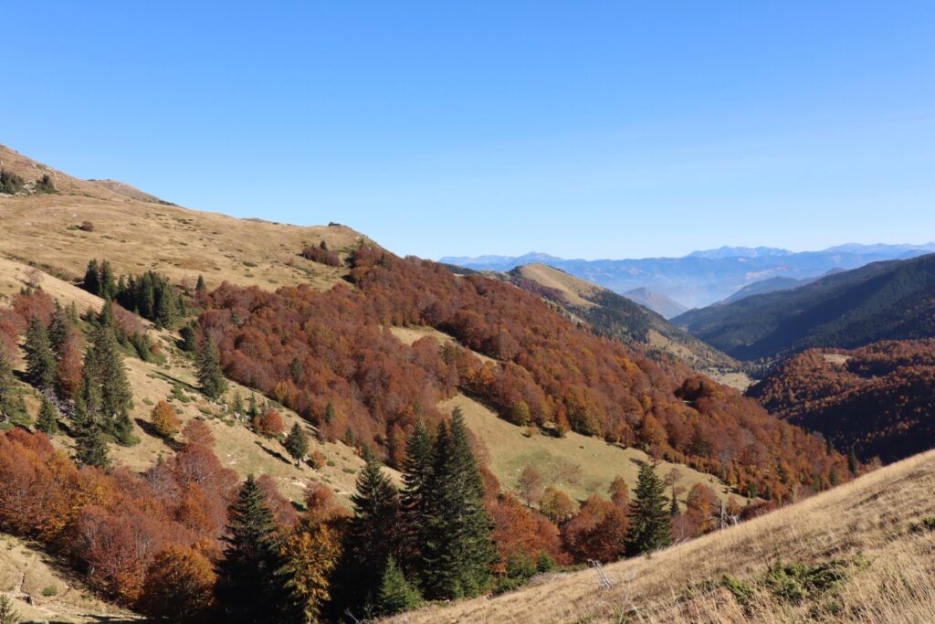 Es fehlen uns rund 12 km bis zum ersten grünen Grenzübertritt nach Albanien. Eine traumhafte Morgenstimmung begleitet uns auf unserem Abstieg, zudem ist es mild und windstill. Wir sind selber erstaunt, dass schon der 24. Oktober ist!