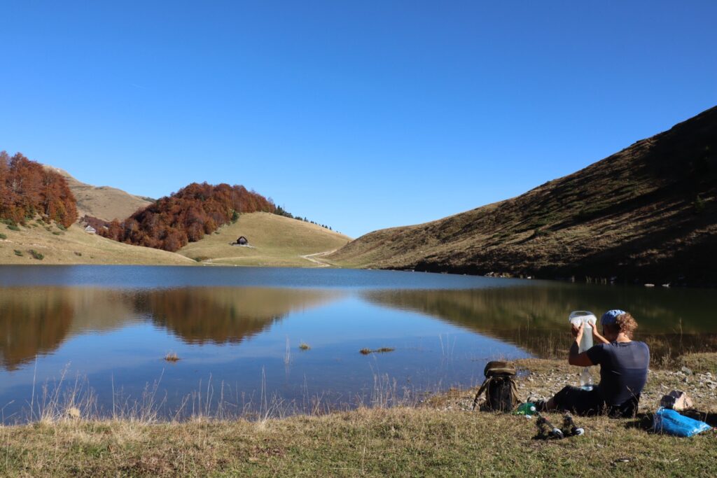 Beim Šiško Jezero füllen wir unsere Wasservorräte nochmals auf, so dass wir zur Not bis zum nächsten Tag durchkämen. Wir haben es verpasst aus dem Bach Wasser zu nehmen. Immer noch nicht ausgelernt.