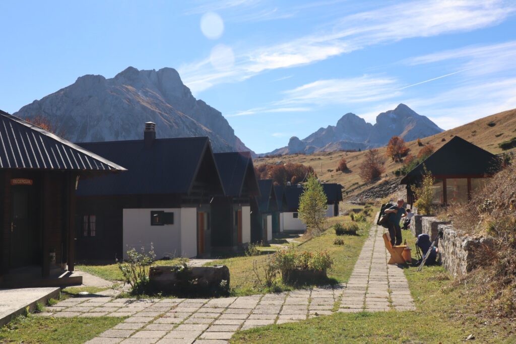 Wir haben nicht damit gerechnet, heute so weit zu kommen, aber auf Fahrwegen gibts schneller Kilometer. So nehmen wir noch den Abstieg zur Katun Vranjak, eine Alp Mitten in einem verschandelten Skigebiet mit einer Berghütte. Erfahrungsgemäss gibts dort super Zeltplätzchen. Zu unserem Erstaunen sehen wir schon von weit oben, dass auf der Alp viel Leben herrscht, denn Autos sind reihenweise geparkt und bei einigen Alphütten raucht der Kamin. Und tatsächlich finden wir in einem Eko-Village, welches sich noch im Aufbau befindet, zwei Bettchen in einer Hütte. Damit hätten wir nicht gerechnet und geniessen, dass wir etwas länger aufbleiben können.
