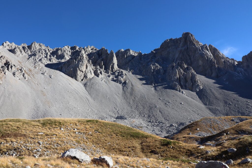 Bald schon sind wir im Tal mit dem immensen Bachbett umgeben von imposanten Bergen, welche einen schützenden Kessel bilden.