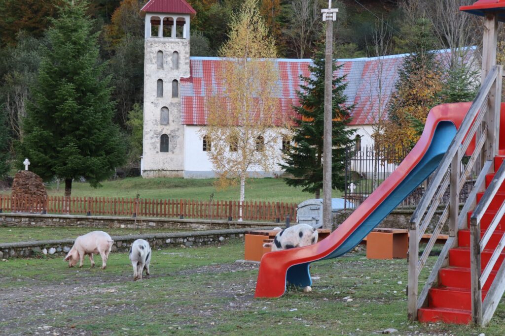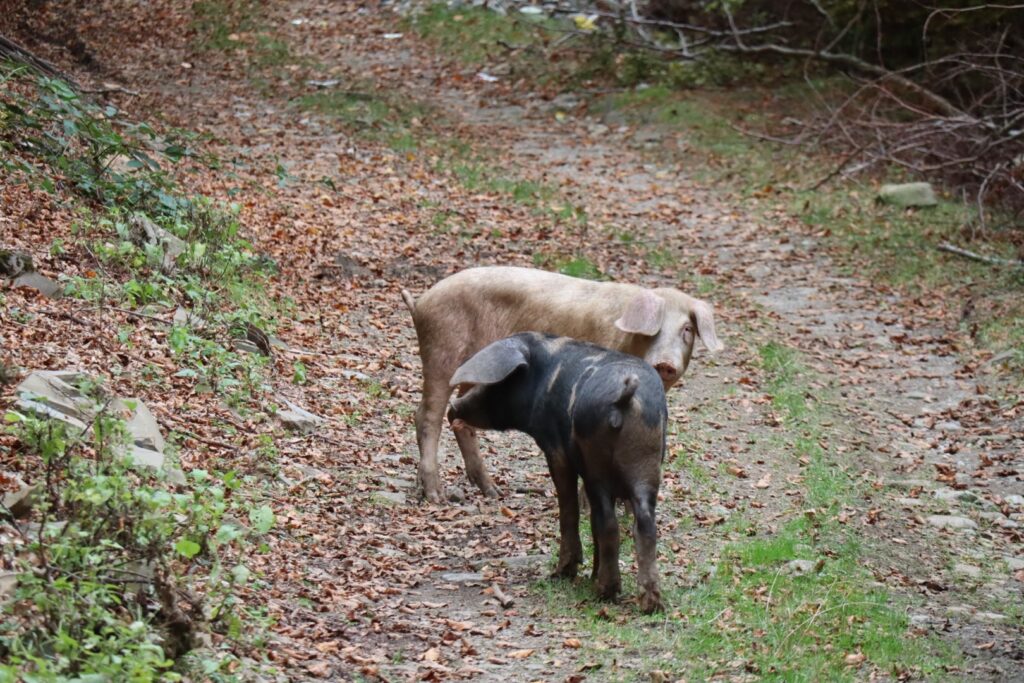 Und dann sind wir einfach in Albanien! Schön dass wir immerhin von ein paar Hausschweinen begrüsst werden. Wir fühlen uns sofort wie zu Hause, denn das Tal Vermosh erinnert uns sehr ans Valbona, welches wir auf unserer SAC-Reise mit Reini im 2017 bereits bewandert haben.