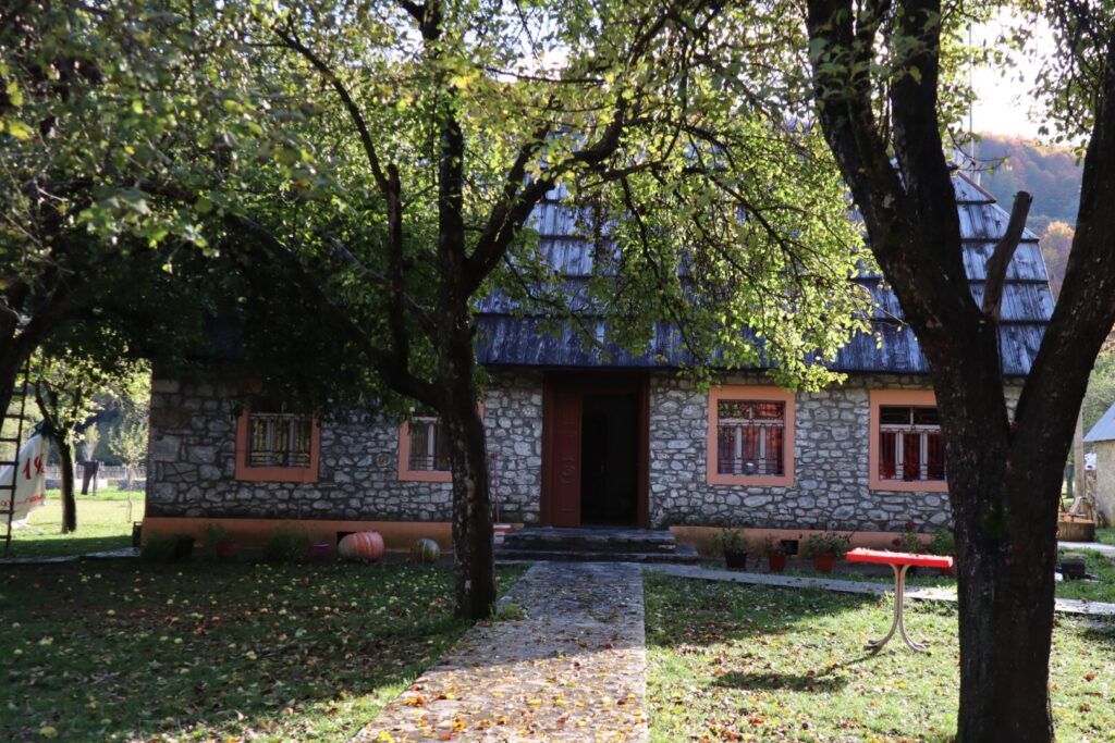 Bis Mittag möchten wir es nach Tresnjevik, einem Strassenpass schaffen, da wir uns dort auf eine warme Mahlzeit in einem der beiden Restaurants freuen. Wir werden zwar von drei Hunden begrüsst, aber leider sind auch diese Häuser bereits geschlossen. Etwas enttäuscht gehen wir noch eine Stunde weiter um einen gemütlichen Rastort zu finden. Und Freude kommt auf, wider erwarten ist ein Eko-Village auf einer Alp noch belebt. Die Küche ist zwar geschlossen, aber ein kühles Getränk zu unseren Snacks ist doch eine grosse Freude. Das letzte Mal hatten wir in Kroatien die Gelegenheit tagsüber bei einem Restaurant einen bedienten Zwischenhalt einzulegen.