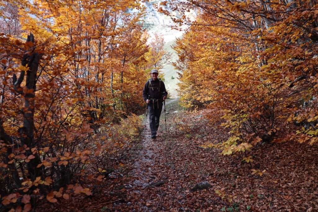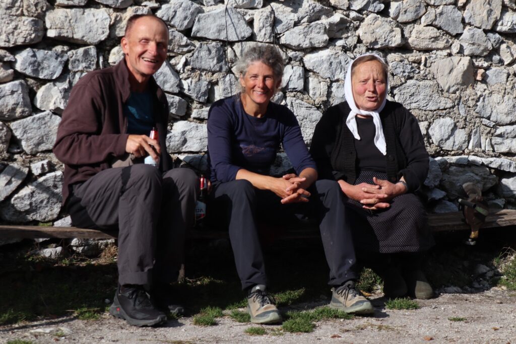 Wir lernen einen sehr spannenden einheimischen Herrn mit einer berühmten Vergangenheit kennen und aus dem milden Nachmittag wird plötzlich frischer Abend. Harry, der holländische Via Dinarica Hiker welchen wir in Rujište (Bosnien) getroffen haben, hat uns von derselben Begegnung erzählt! Manchmal denken wir, dass Hexen am Werk sind! Natürlich senden wir das Foto mit Grüssen Harry zu und erfahren, dass er nach wenigen Kilometern in Kroatien wegen gesundheitlichen Gründen den Trail beenden musste. Umso mehr erkennen wir das Glück, dass wir gesund und nur mit kleinen Verletzungen durch die fünf Monate gewandert sind.