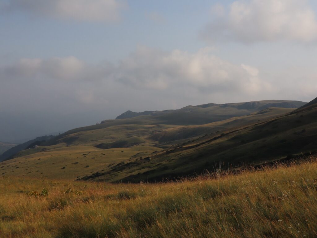 Auch der Abstieg ist freundlich, unten an der Hauptstrasse gehts dann allerdings nochmals hoch auf ein Plateau. Immer wieder erinnert uns die Region stark an Montenegro, unendliche grasbewachsene Hügelzüge im sanften auf und ab sind bis zum Horizont zu sehen.