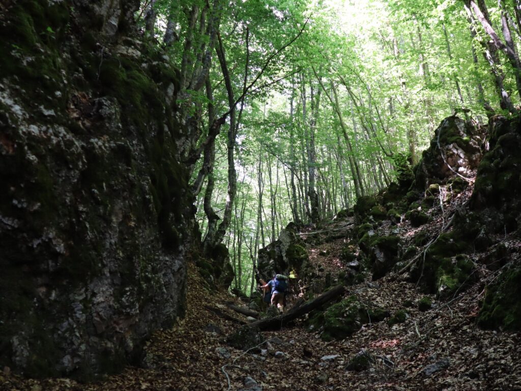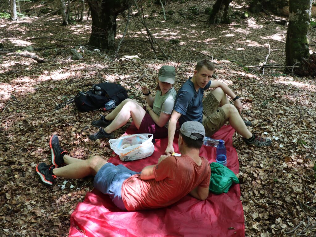 Das heisst konkret: umkehren. Doch zuerst gibts einen Mittagshalt. Die Stimmung war auch schon besser. Der Abstieg nach Selce geht dann erstaunlich rasch und bald schon sind wir wieder im Aufstieg durch einen märchenhaften Buchenwald.