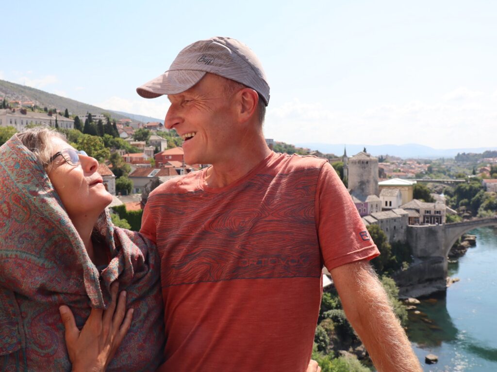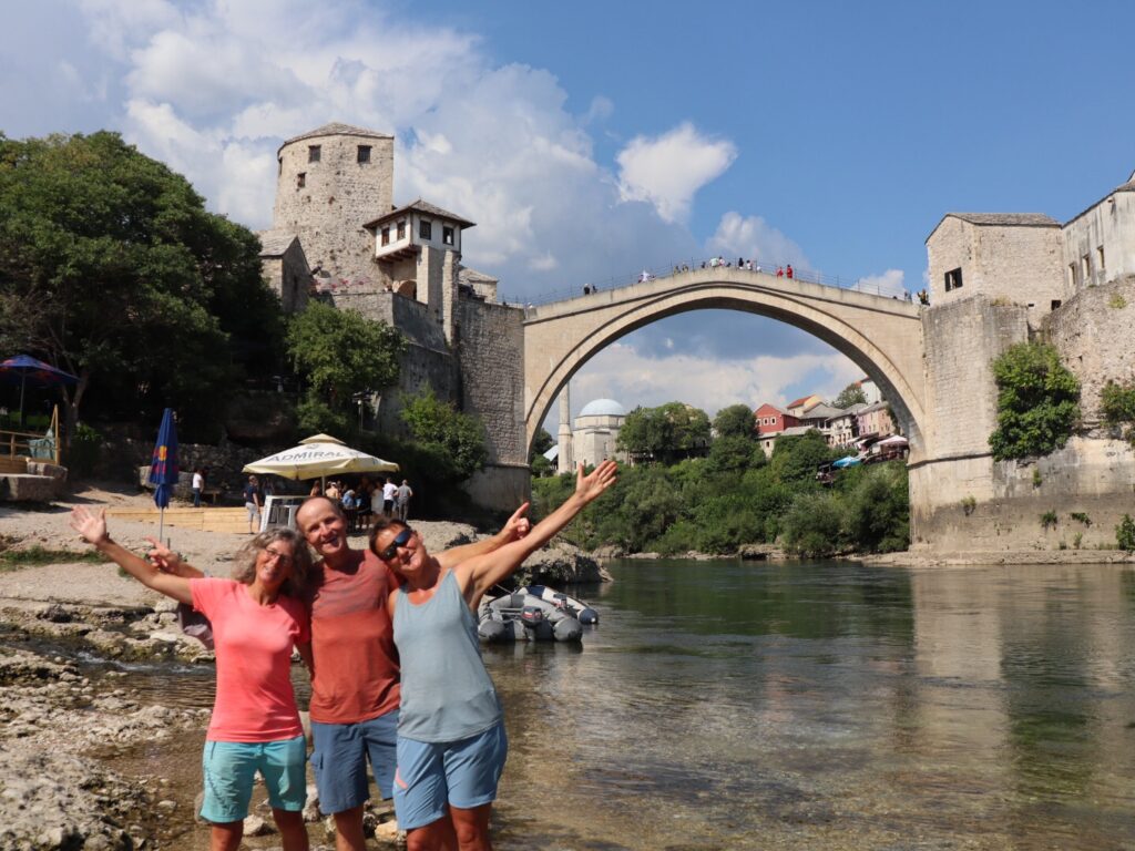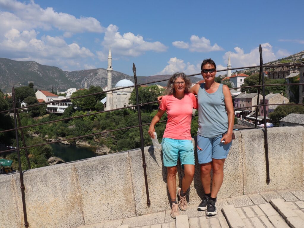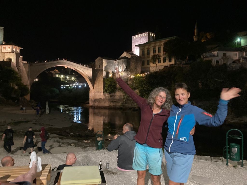 Es ist der perfekte Ort, um die unvergesslichen elf Wandertage mit Doris abzuschliessen. Es bleiben uns zwei Tage in dieser historischen Stadt, welche unter UNESCO Kulturerbe steht. Wir geniessen die pittoreske Altstadt, das abwechslungsreiche Essen, die tolle Stimmung, die lauen Nächte, die vielen Eisstände, das lokale Bier, die spontanen Gespräche mit anderen Touristen, die unterschiedlichen Live-Musiken, das komfortable Apartmani, die Altstadtbrücke mit den waghalsigen Wasserspringern und die multikulturelle Atmosphäre. Letztes Jahr haben wir Mostar ausgestorben und etwas trostlos erlebt, schön ist das Leben wieder erwacht und die Gassen sind gefüllt mit lachenden Menschen, holpernden Kinderwagen, riesigen Reisegruppen hinter einem Fähnchen nachwandelnd, Hunden und Katzen, halbnackten bis komplett verhüllten Gestalten, Souvenirjägern und Selfiespezialisten.