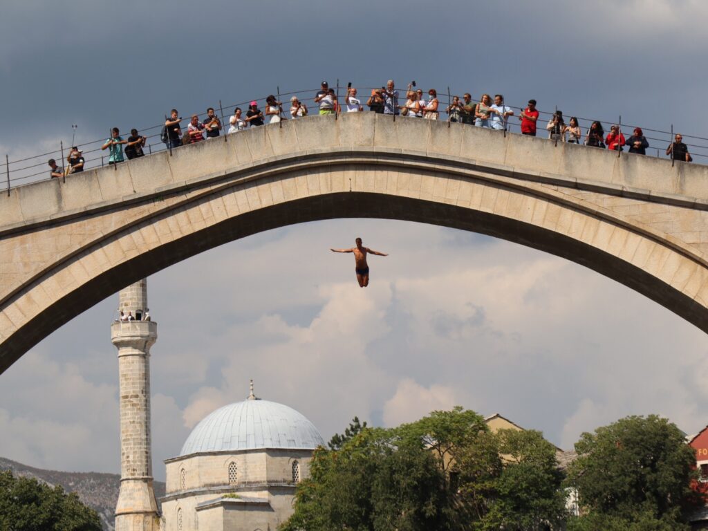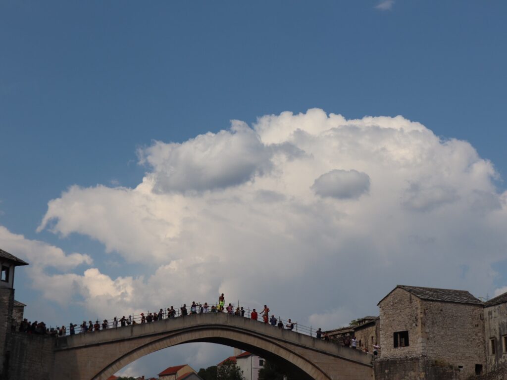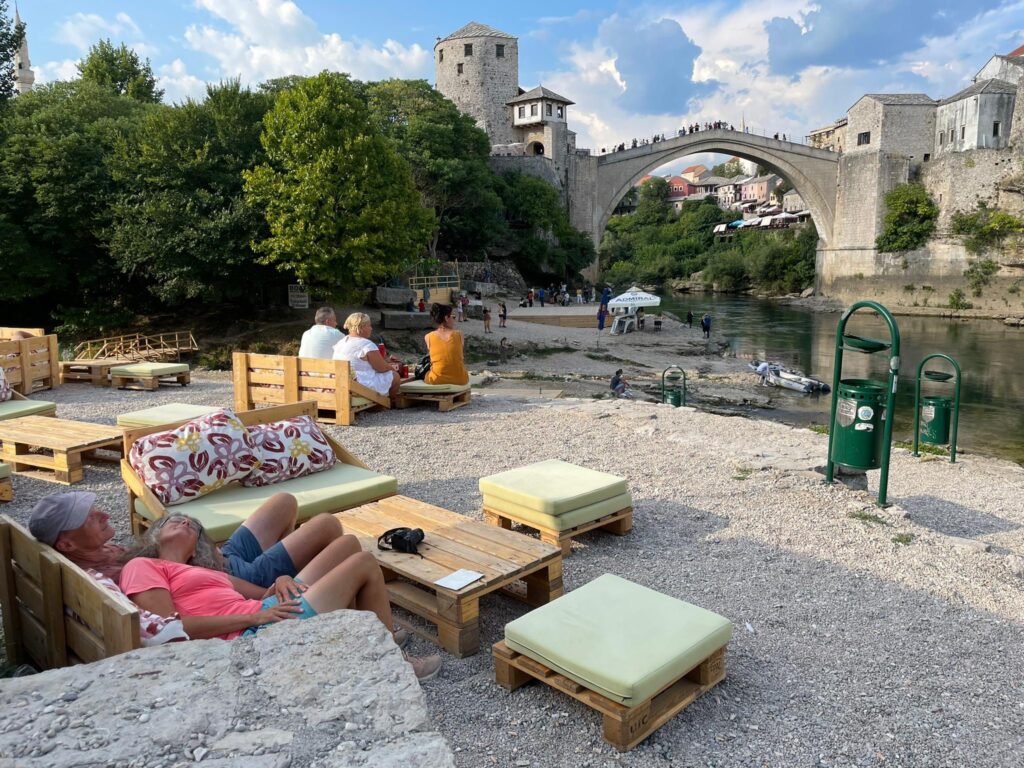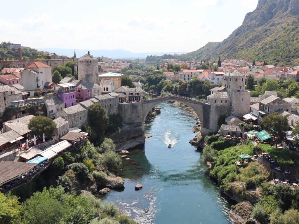 Es ist der perfekte Ort, um die unvergesslichen elf Wandertage mit Doris abzuschliessen. Es bleiben uns zwei Tage in dieser historischen Stadt, welche unter UNESCO Kulturerbe steht. Wir geniessen die pittoreske Altstadt, das abwechslungsreiche Essen, die tolle Stimmung, die lauen Nächte, die vielen Eisstände, das lokale Bier, die spontanen Gespräche mit anderen Touristen, die unterschiedlichen Live-Musiken, das komfortable Apartmani, die Altstadtbrücke mit den waghalsigen Wasserspringern und die multikulturelle Atmosphäre. Letztes Jahr haben wir Mostar ausgestorben und etwas trostlos erlebt, schön ist das Leben wieder erwacht und die Gassen sind gefüllt mit lachenden Menschen, holpernden Kinderwagen, riesigen Reisegruppen hinter einem Fähnchen nachwandelnd, Hunden und Katzen, halbnackten bis komplett verhüllten Gestalten, Souvenirjägern und Selfiespezialisten.