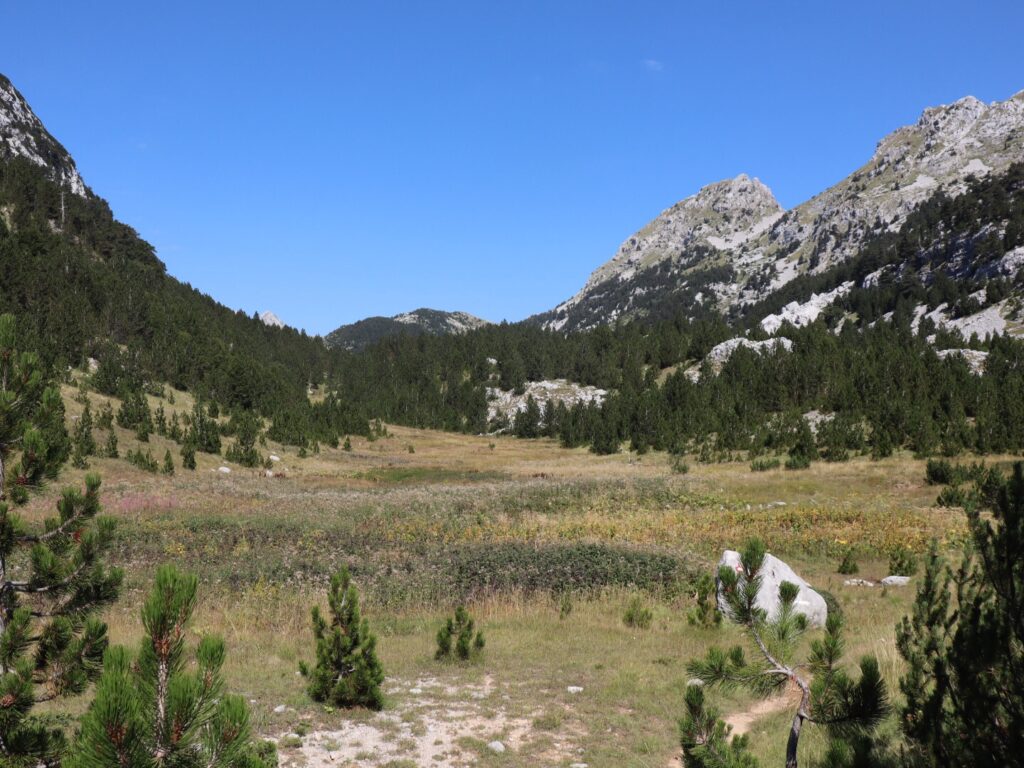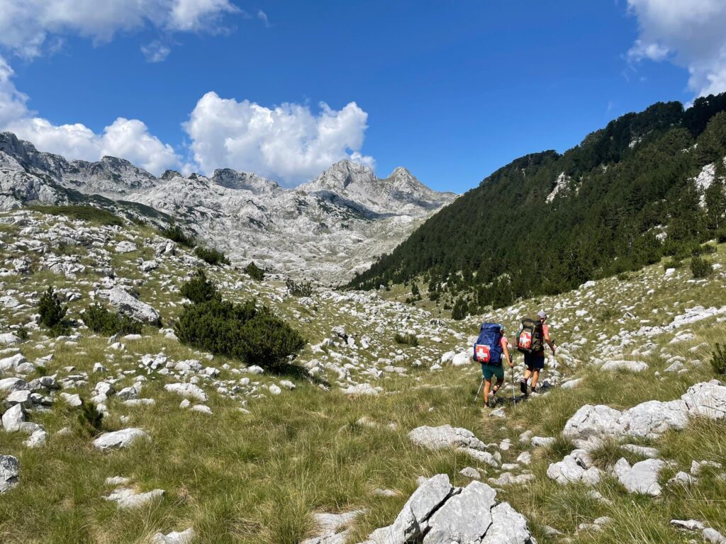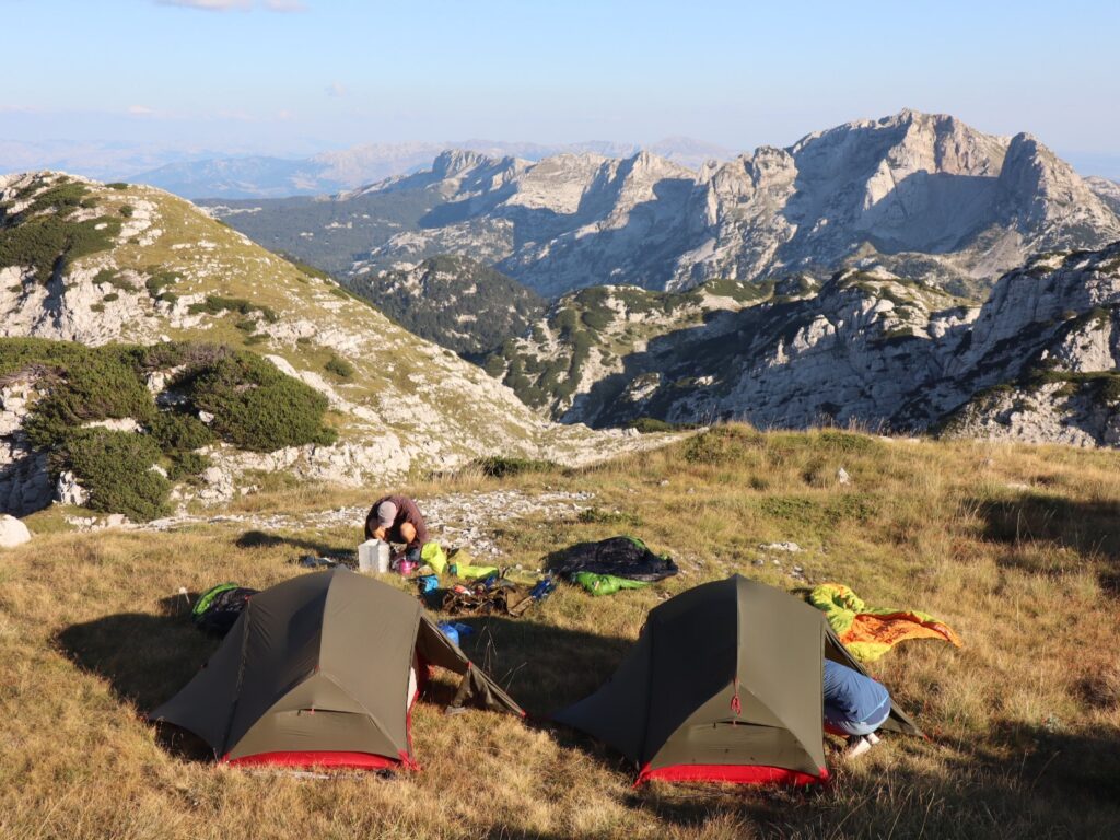 Wir planen zur unbewarteten aber offenen Jezerce-Hütte abzusteigen, aber auf dem Weg dorthin liegt das perfekte Wieslein für zwei Hubba Hubbas mit atemberaubendem Panorama. Da bleiben wir bis Morgen, keine Frage!