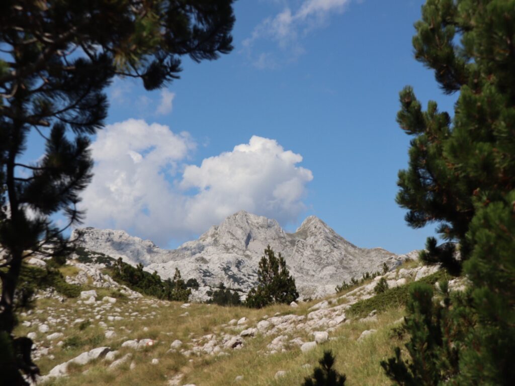 Der Aufstieg erfolgt wunderschön und langgezogen, zuerst im Laubwald, dann durch Föhren und ab Bijele Vode durch karstiges Gelände mit Blick auf unsere beiden heutigen Gipfel Otiš und Zelena Glava.
