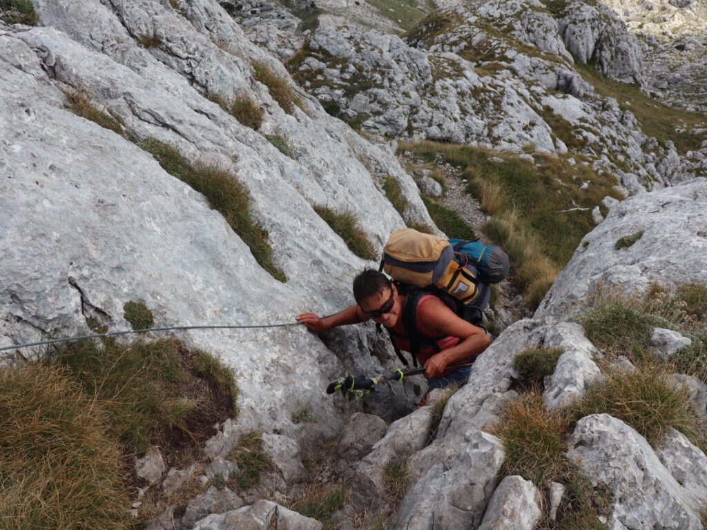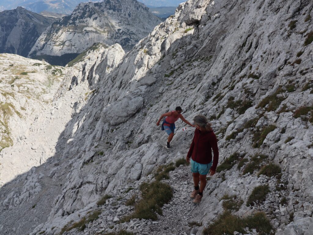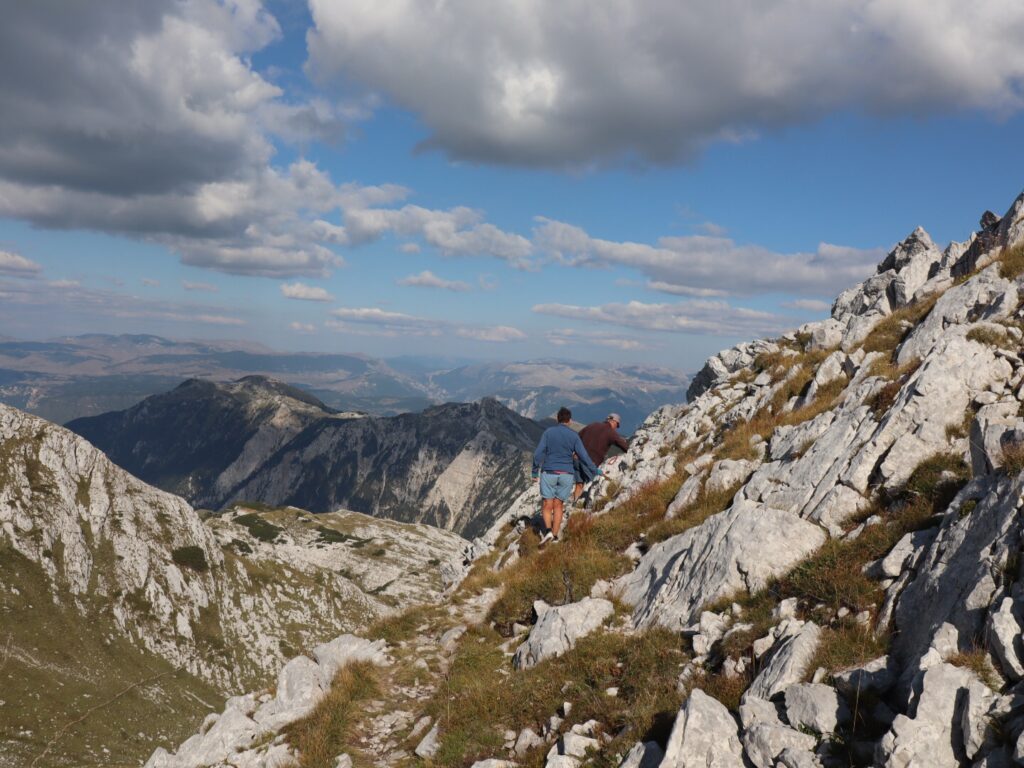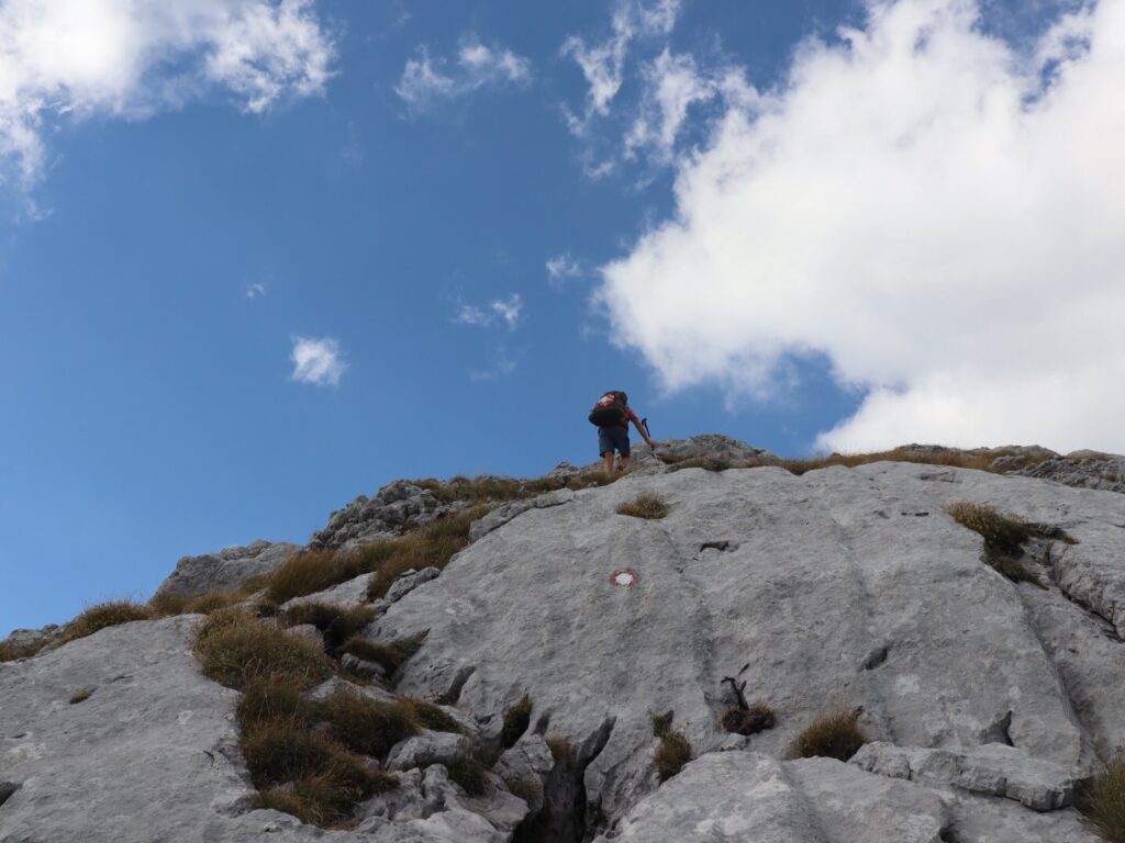 Bald sind wir wieder beim Sattel nur um gleich wieder auf der anderen Seite hochzusteigen. Auch diese rund 100 HM sind rasch bewältigt, einige Stellen sind mit Fixseilen gesichert, der Weg ist jedoch nirgends ausgesetzt. Richtig nette Kraxelei!