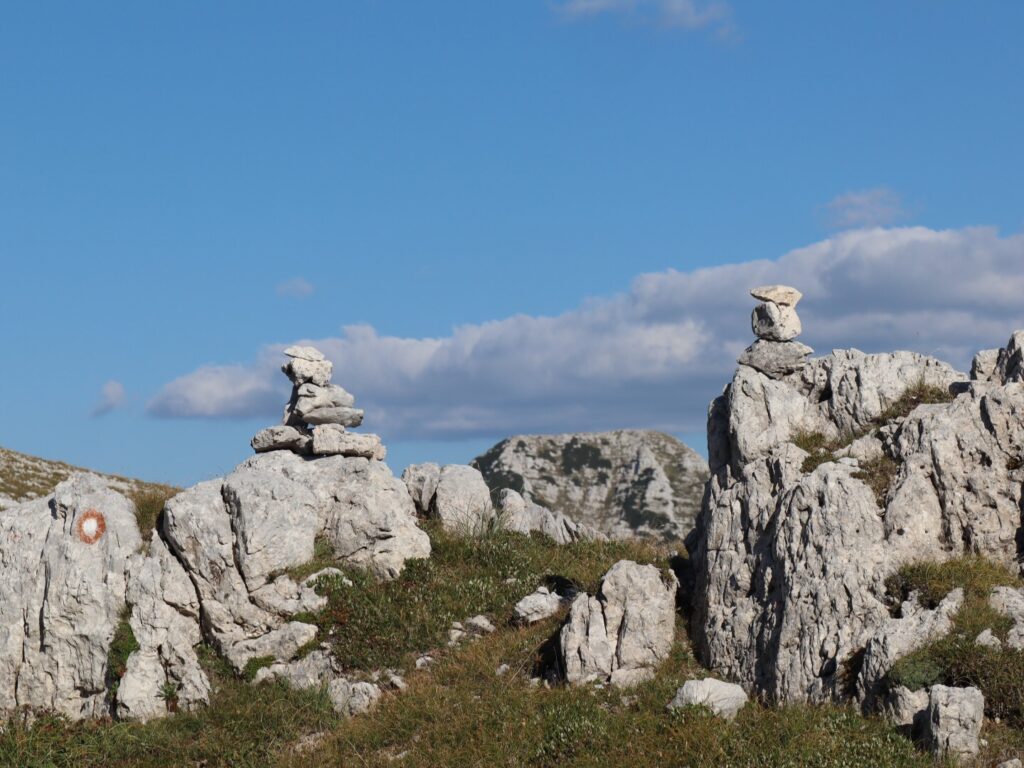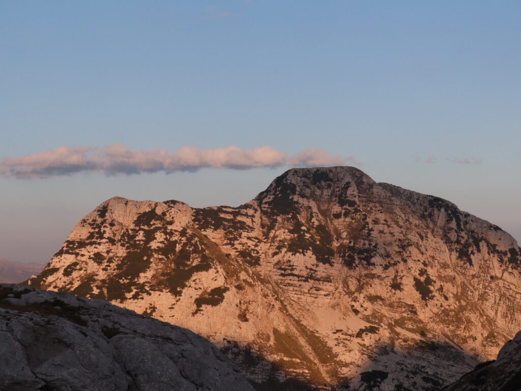 Das Wolkengeschmier breitet sich immer mehr aus und wir steigen wieder hoch bis zum Greda-Pass, wo wir uns entscheiden müssen, ob wir auch heute einen Gipfel einbauen möchten. Den Abstieg nach Ravna haben wir sowieso erst für Morgen geplant, lieber nochmals eine Nacht ganz nah dem leuchtenden Sternenhimmel weit weg von allem.