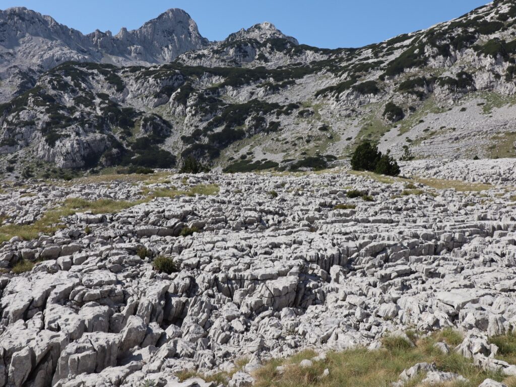 Wir werden heute nochmals im Prenj-Gebirge unterwegs sein, für uns einer der schönsten Abschnitte auf der Via Dinarica. Die karstigen Felder mit den zahlreichen Gipfeln erinnern uns ans Alpstein, nur dass wir hier sehr einsam wandern aber dafür fehlen auch die gemütlichen Einkehrmöglichkeiten. Aber wir tragen ja Wasser mit, viel Wasser!