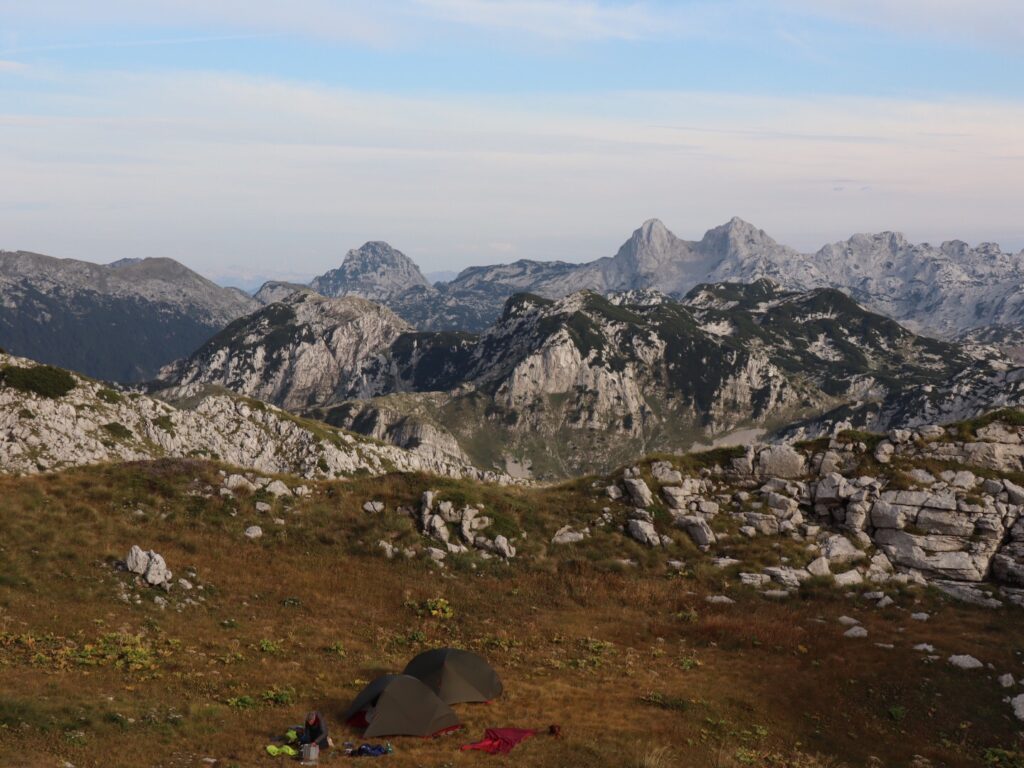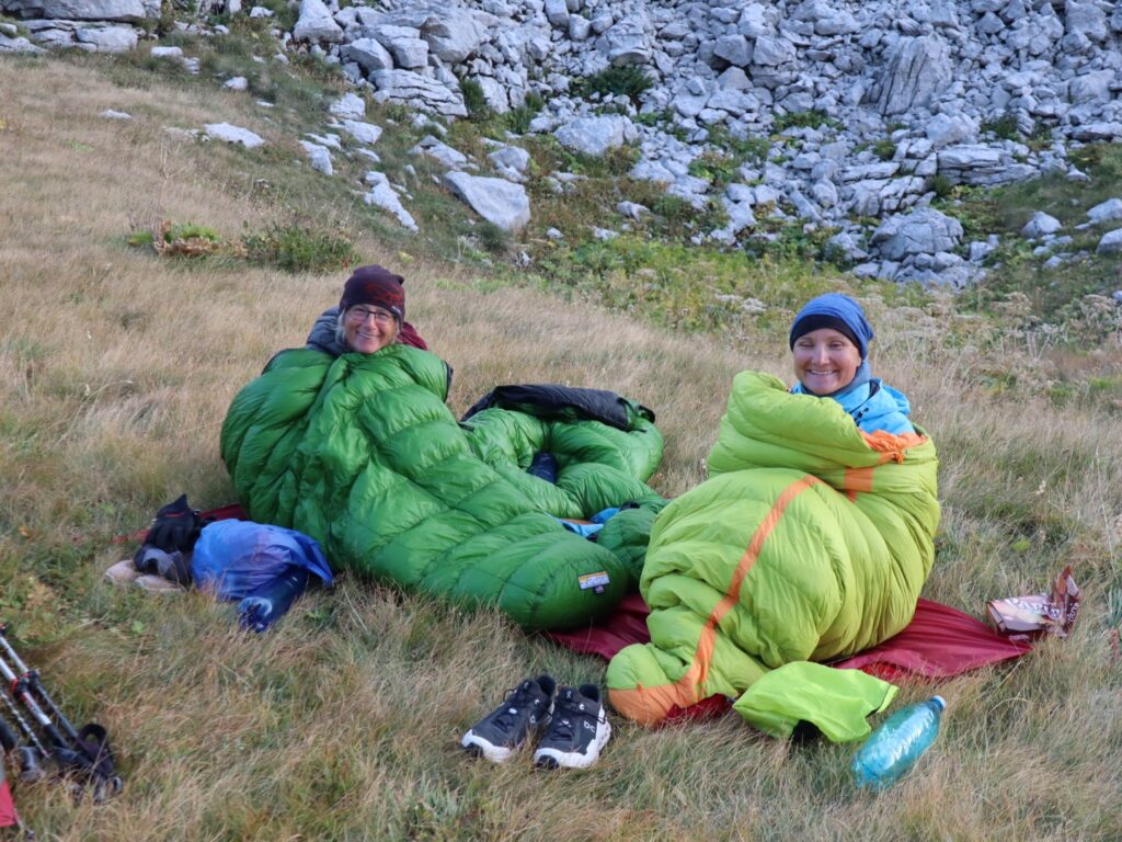 Die windstille Nacht fühlt sich endlos an, mit den ersten Sonnenstrahlen räumen wir mit einer Überdosis Schlaf unser Nachtlager zusammen und nehmen den langen Abstieg nach Ravna in Angriff.