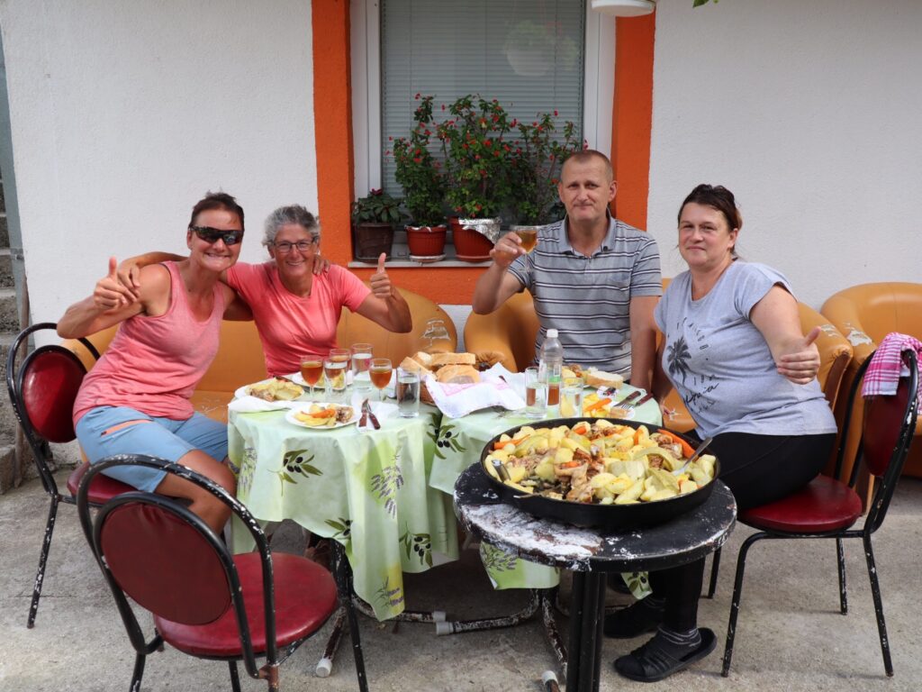 Und plötzlich spuckt uns das Dickicht aus und wir stehen auf 200 MüM bei strahlender Sonne am unteren Dorfrand von Ravna. Es ist bereits Mittag und wir zielen ohne Umwege auf den Shop von unseren letztjährigen Freunden, der Familie Bela, zu.