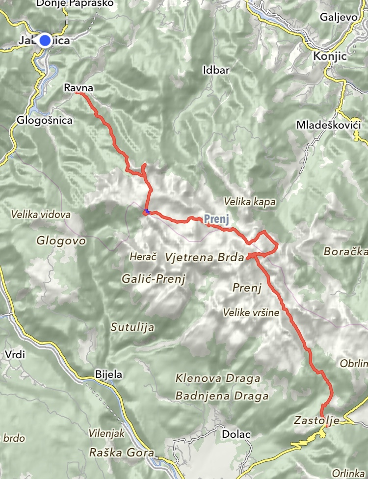 Um 17 Uhr brechen wir dann auf, es fehlen noch etwa 1 1/2 Wanderstunden bis Jablanica. Es wird aber nichts mehr mit Wandern, Vedad bietet uns ein Fahrdienst an. Wir nehmen gerne an, obwohl der Trail nun für Doris doch sehr abrupt endet.
