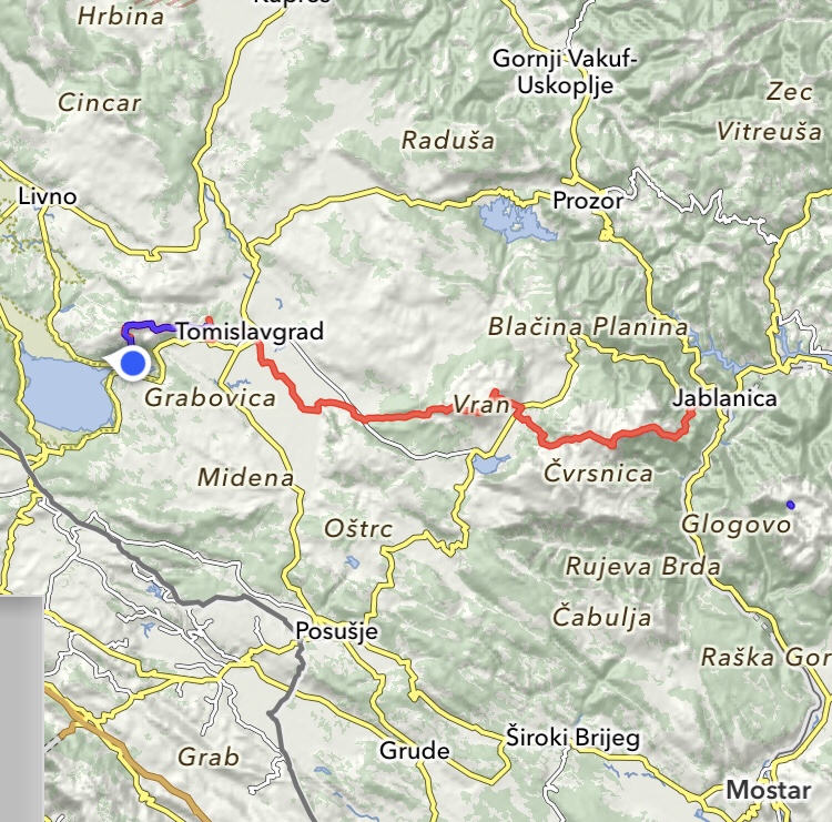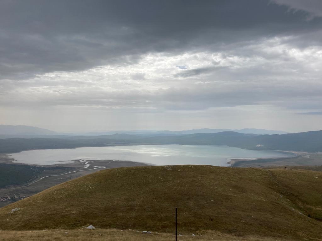Beim Abstieg zurück sehen wir dann den verpassten Abzweiger, wohl doch noch nicht ganz wach? Die rund 10 km auf dem Hügelzug sind wunderschön, mit Auslick auf den Blidinje-See, das Prenj-Gebirge, den Vilinac, den Buško-Jezero bis nach Tomislavgrad, unserem nächsten Ziel.