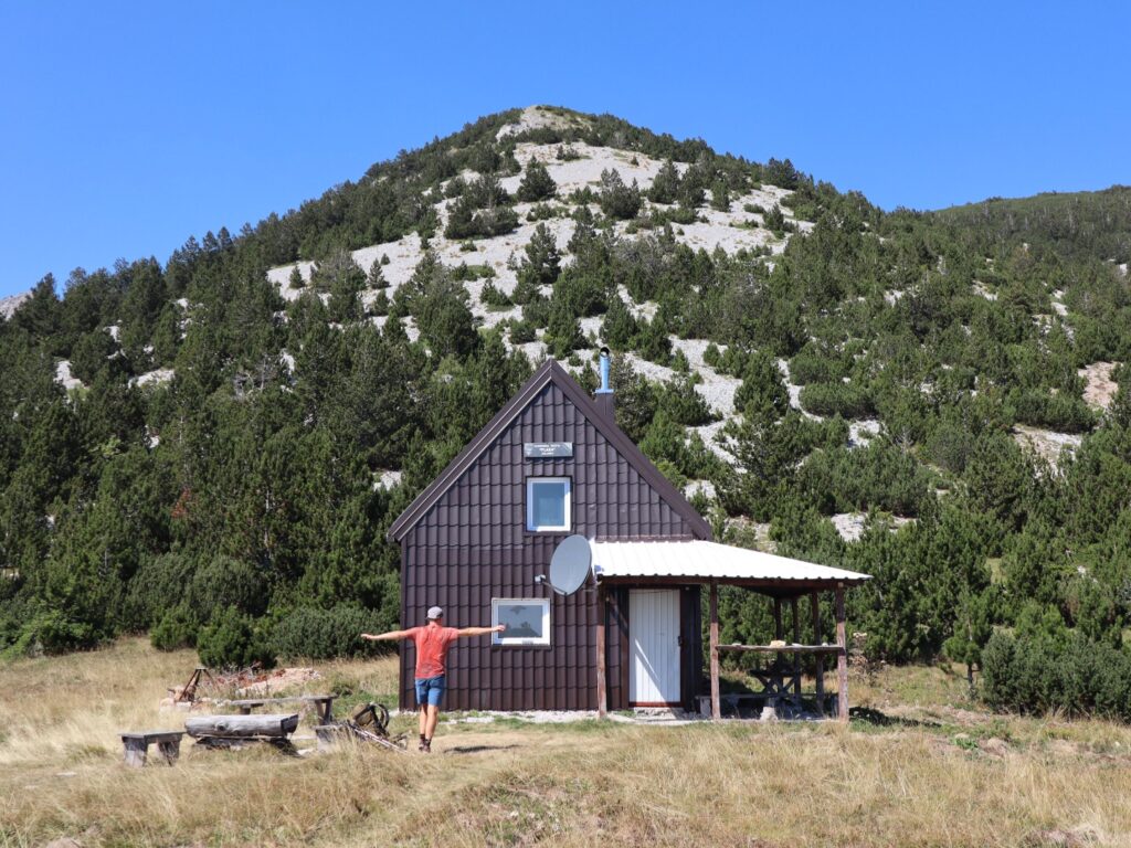 Es fehlt nicht mehr viel bis zur Berghütte Planinarski Dom Vilinac, beim Abzweiger liegt das Schild ‚geöffnet‘ am Wegrand und in uns erwacht Vorfreude auf ein kühles Bier. Erreichen wir die Hütte noch bevor der Hüttenwart seinen Wochenenddienst beendet? In Bosnien sind die Berghütten mehrheitlich geschlossen, die Vilinac ist jedoch von Freitag bis Sonntag bewartet.