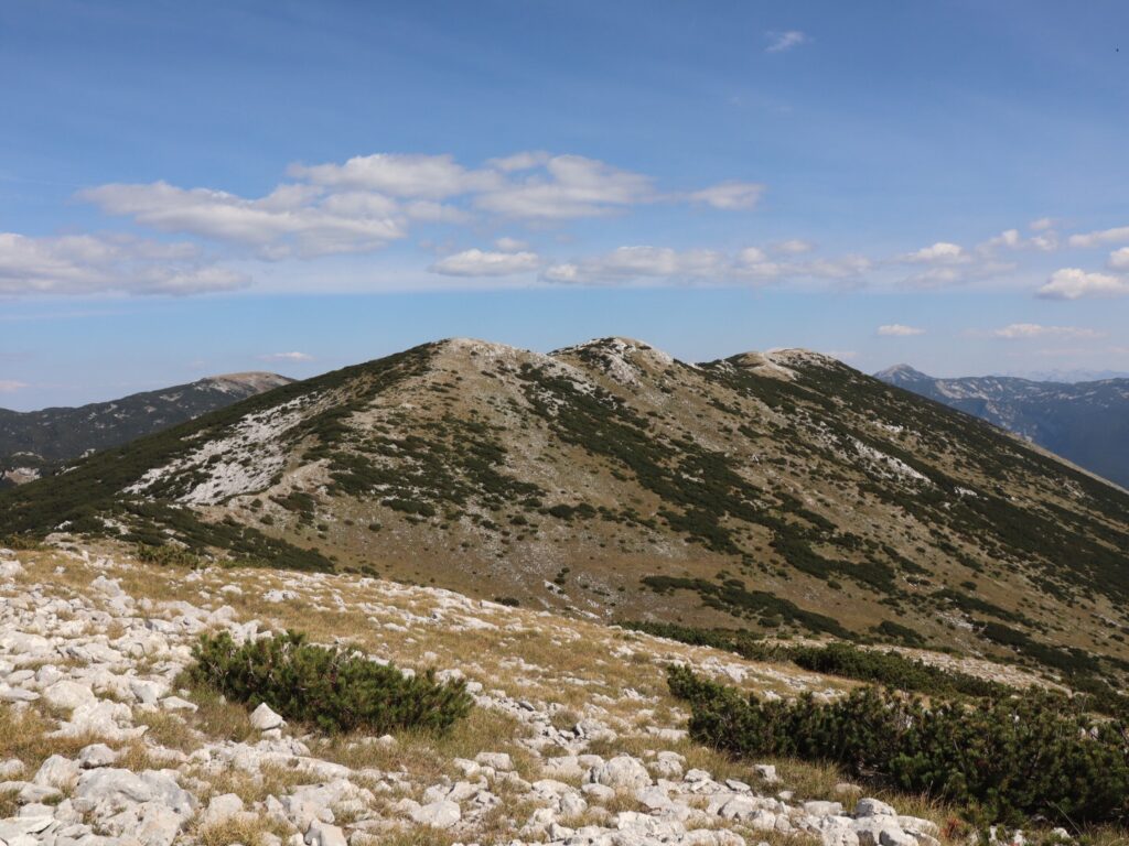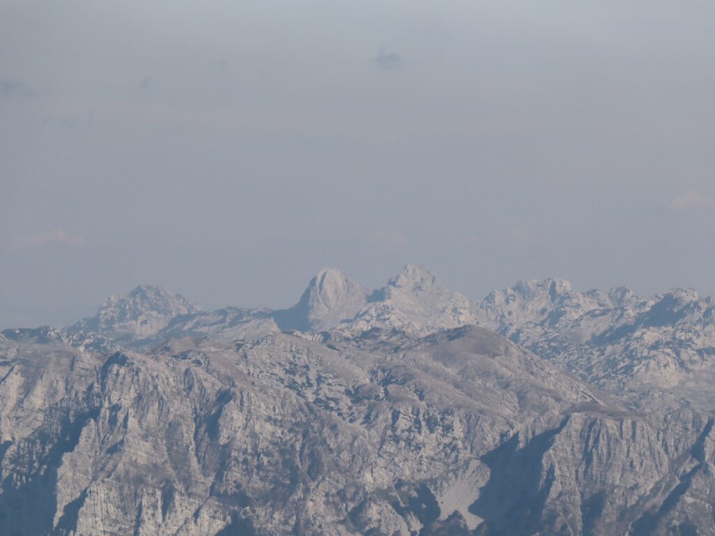 Die restlichen Höhenmeter schaffen wir recht beflügelt und bald schon stehen wir auf dem Trinača. Auch die beiden markanten Prenj-Gipfel kommen weit hinten wieder zum Vorschein.