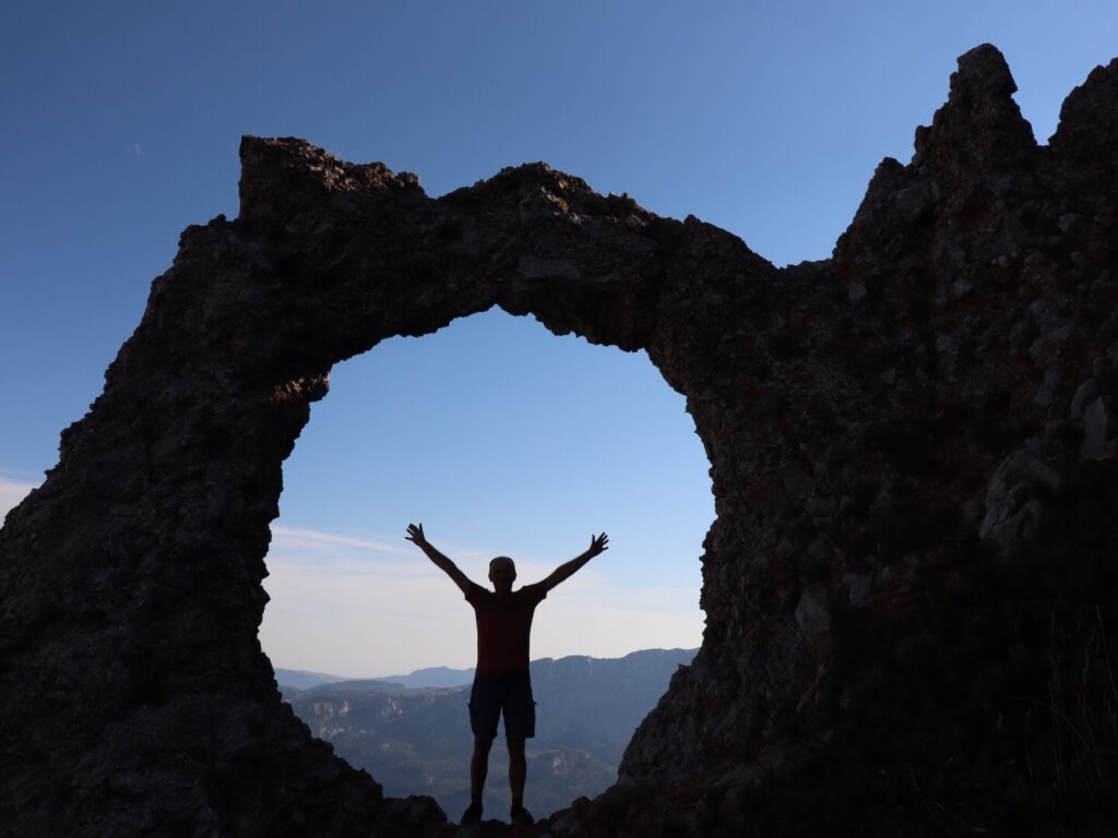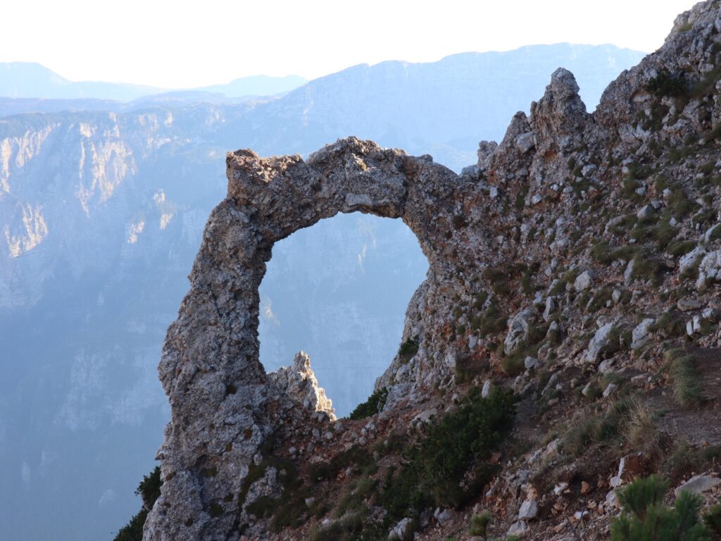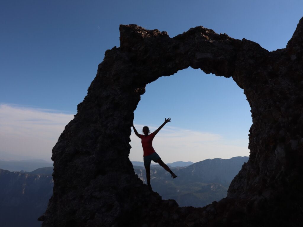Der spektakuläre Steinbogen Hajdučka Vrata hält immer noch. Die Sonne ist zwar bereits hinter den Felsen versteckt aber eine kleine Fotosession legen wir dennoch ein.