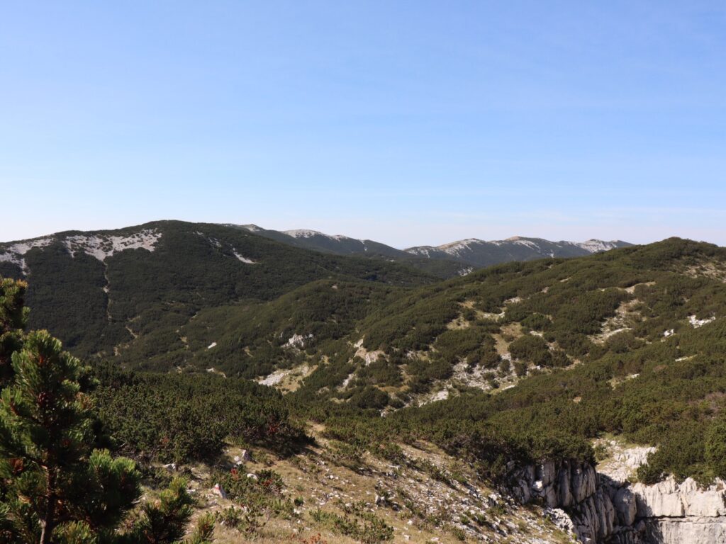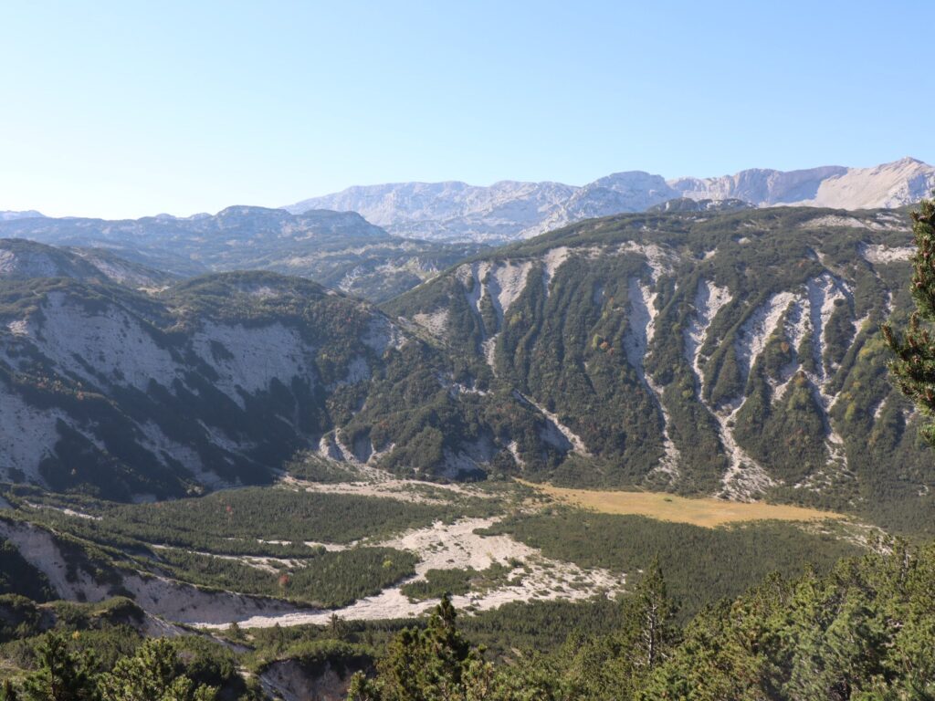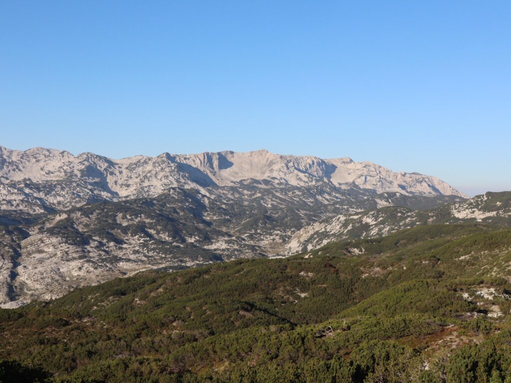 Seit gestern sind wir im Čvrsnica-Gebirge unterwegs, ein weiteres Wanderhighlight in Bosnien. Entsprechend gut sind die Wege und mehrheitlich auch die Markierungen. Das Laub der Buchen verfärbt sich bereits langsam, die Föhren so weit man blicken kann wirken beruhigend und die felsigen Abschnitte zwischendurch sorgen für optische Abwechslung.