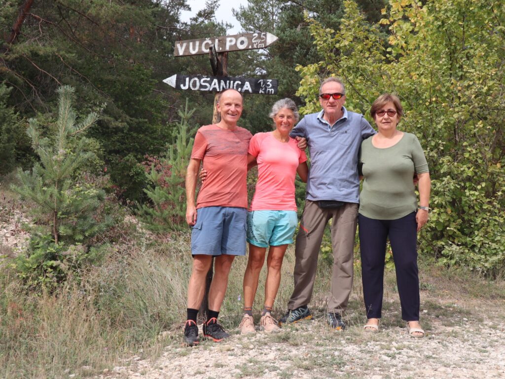 Wir treffen uns am Vormittag nochmals zum Kaffee mit Stipe, so dass wir Vesna auch noch sehen. Nach dem gemeinsamen Einkauf mit sehr unterschiedlichen Artikeln fahren sie uns nach Ostrozac, dem Ausgangspunkt für die Überschreitung des Tušnica Vitrenik. Richtig Luxus, nur die schönen Abschnitte wandern zu ‚müssen‘ und dazwischen mit Privatfahrer chauffiert zu werden! Aber damit ist nun wohl wieder Schluss.