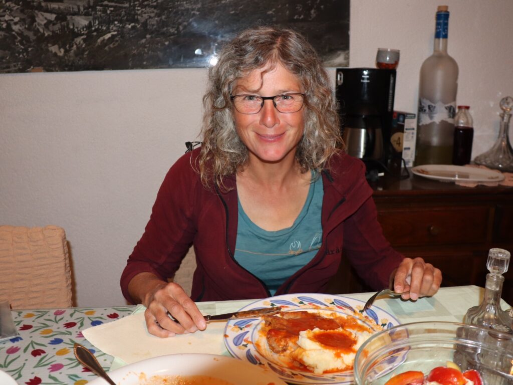 Bereits Mitten im Nachmittag sitzen wir dann mit Marie-Lene aus Deutschland bei Uštipci und Pivo, bei den erlebten Trailerfahrungen vergeht die Zeit viel zu schnell. Marie-Lene wandert die VD südwärts und auch sie hat sich in der Vorbereitungsphase bei uns ein paar Ratschläge geholt, zudem hat der Blog sie ermutigt, diesen Weg auch als Frau alleine wagen zu können.