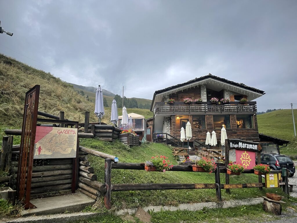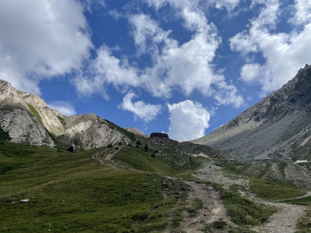 Beim zweiten Aufstieg von heute, zum Passo della Gardetta, gibts einen Boxenstop im Rifugio Gardetta, einer alten Kaserne. Wir fühlen uns nun schon ziemlich optimistisch, dass wir die von Komoot gerechneten 9 Wanderstunden zum Rifugio Viviere nicht brauchen und auch die Wolken schauen nicht mehr ganz so grimmig vom Himmel.