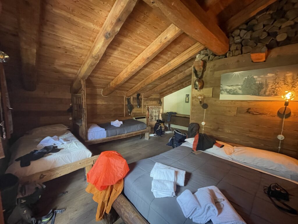 Auch im Inneren ist es sehr gemütlich und der 4-Gänger zum Znacht weckt in unseren Geschmacksknospen spannende Emotionen – von fischig bis süss ist alles dabei. Die Musik aus der blinkenden Musikbox versetzt uns jedoch eher in einen türkischen Hamam, die Runde wird immer schläfriger und Thomas zum sterbenden Schwan. Zum Glück müssen wir nur noch die Treppe hoch.