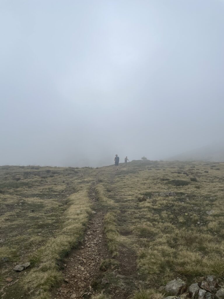 Schon bald tauchen wir in Nebelschwaden und der frische Wind hellt die Stimmung auch nicht auf. Ist das angemessen für Hitzköpfe?