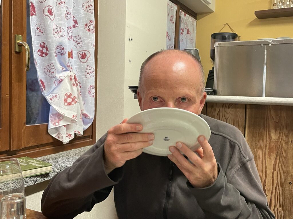 Wir sind recht felice, das gut besuchte Sant‘ Anna zu verlassen. Als Emerit würden wir einen anderen Platz wählen, da sind wir ja jeden Abend auf dem Jungfraujoch einsamer. Aber Pilgerstätten sind nun mal nur theoretisch für Ruhesuchende.